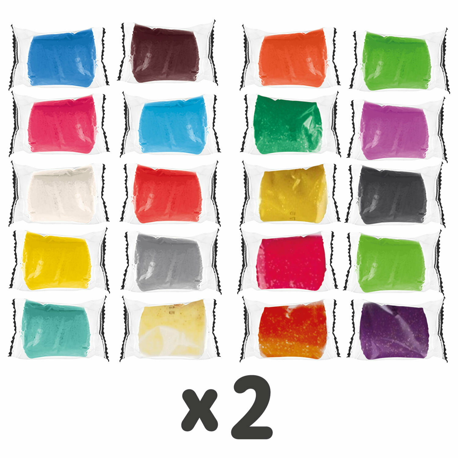Купить Пластилин-тесто Brauberg 40 шт, 2000 г, 12 формочек, 2 стека, 2 штампика, 1 скалка, 20 пакетиков для хранения