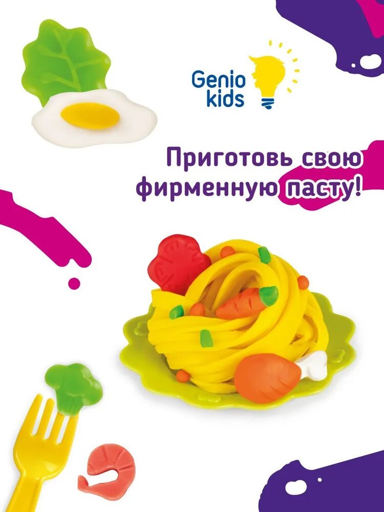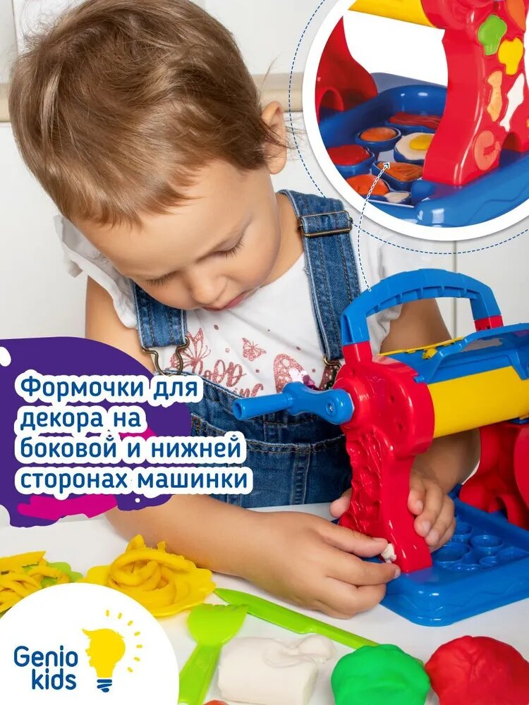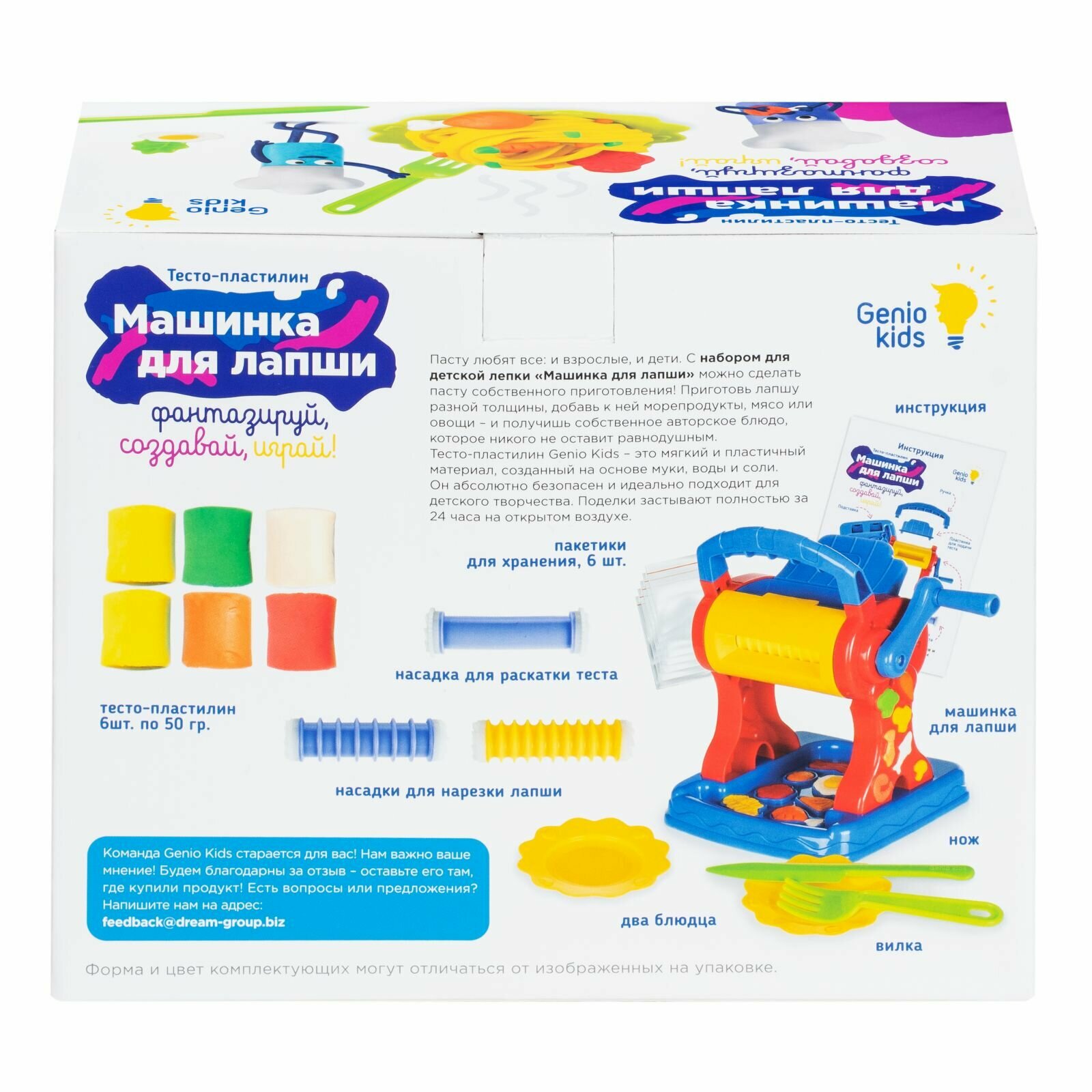Genio Kids Тесто-пластилин. Машинка для лапши (6шт.*50гр, с аксессуарами, в коробке, от 3 лет) TA203