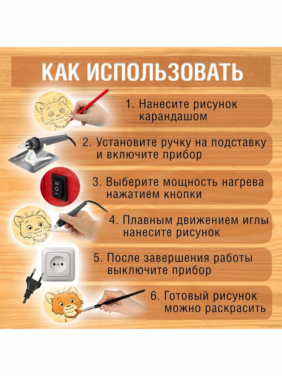 | Подробная комплектация | инструкция, насадка для выжигания по дереву |