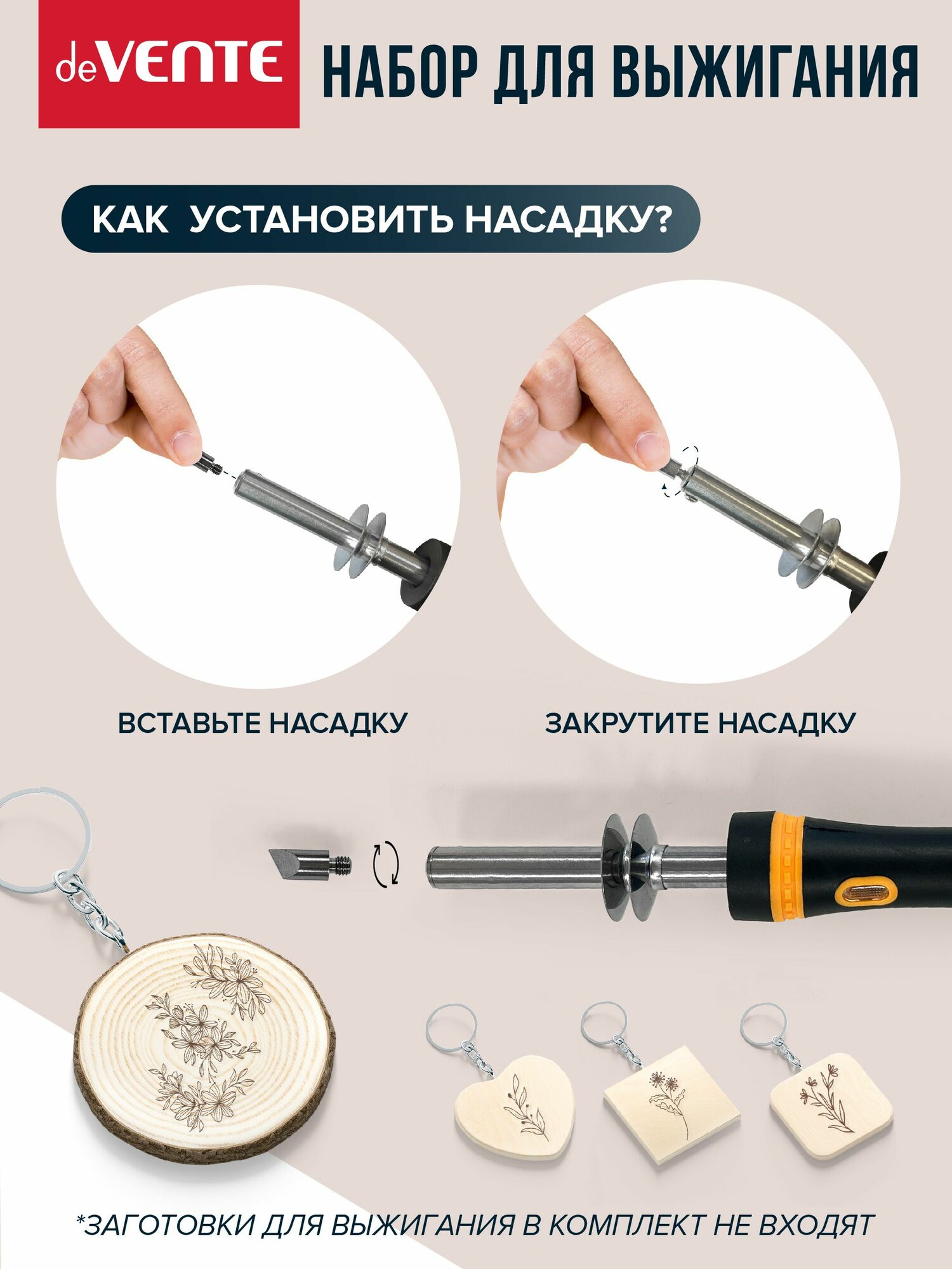 Набор для выжигания deVENTE "Pyrograph", прибор с подставкой и насадками, 2 трафарета, пластиковый кейс