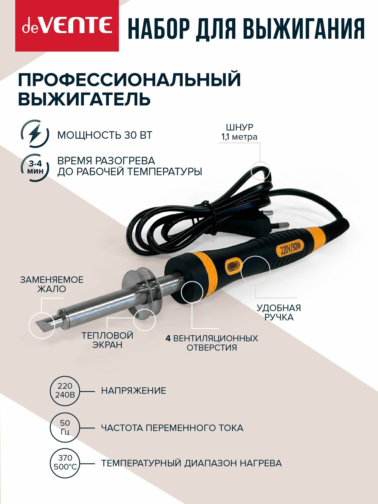 Набор для выжигания "deVENTE" Pyrograph электрич.7 пр. ,мощность 30Вт, шнур 1,1м.