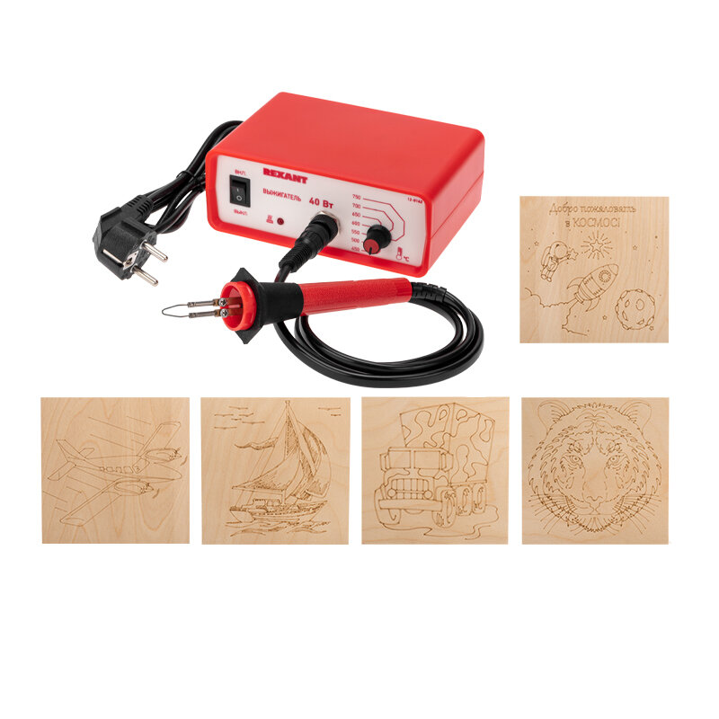 Набор для выжигания по дереву - аппарат 40 Вт и 5 досок серия "Для мальчиков" REXANT