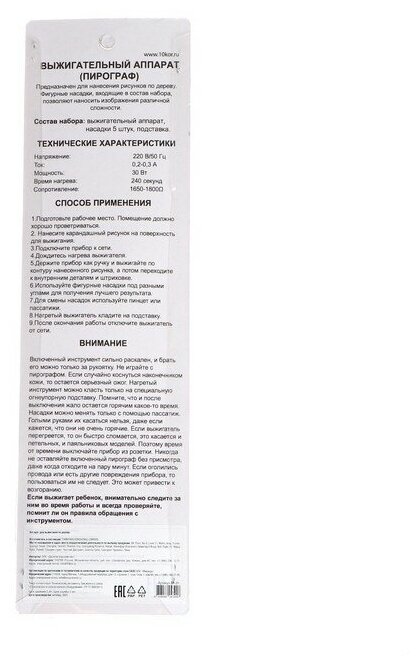 | В комплекте | выжигательный аппарат, подставка, сменные насадки |