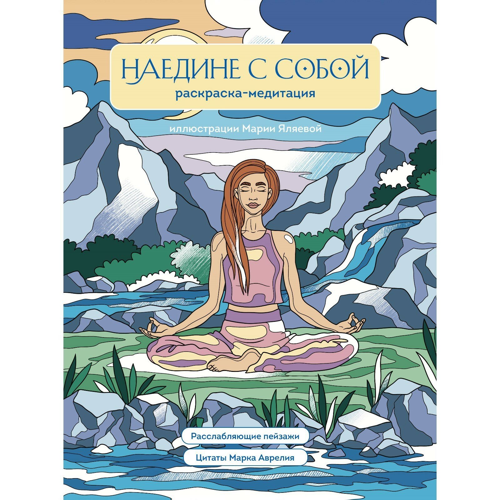 Купить Яляева М.В. Наедине с собой. Раскраска-медитация. Расслабляющие пейзажи. Цитаты Марка Аврелия