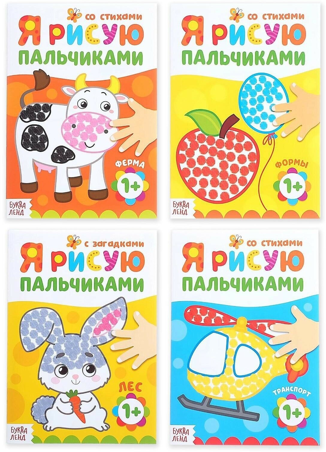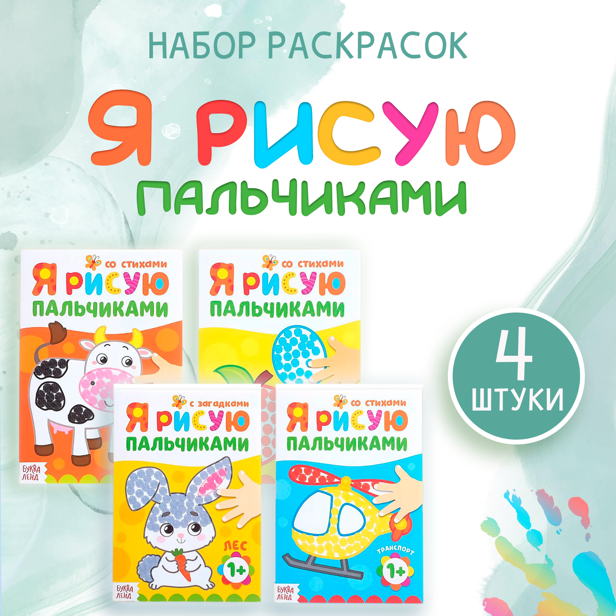 Раскраски для малышей "Я рисую пальчиками", набор, 4 штуки по 16 страниц, со стихами, для детей и малышей