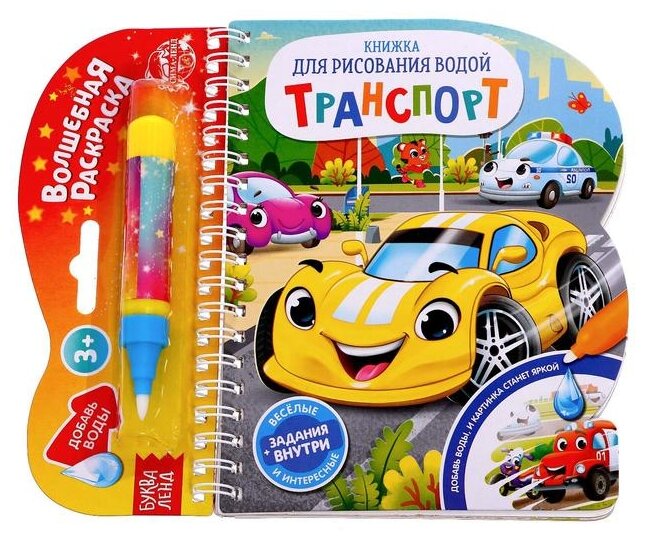 Книжка для рисования водой многоразовая «Транспорт» с водным маркером, 10 стр. интересное: