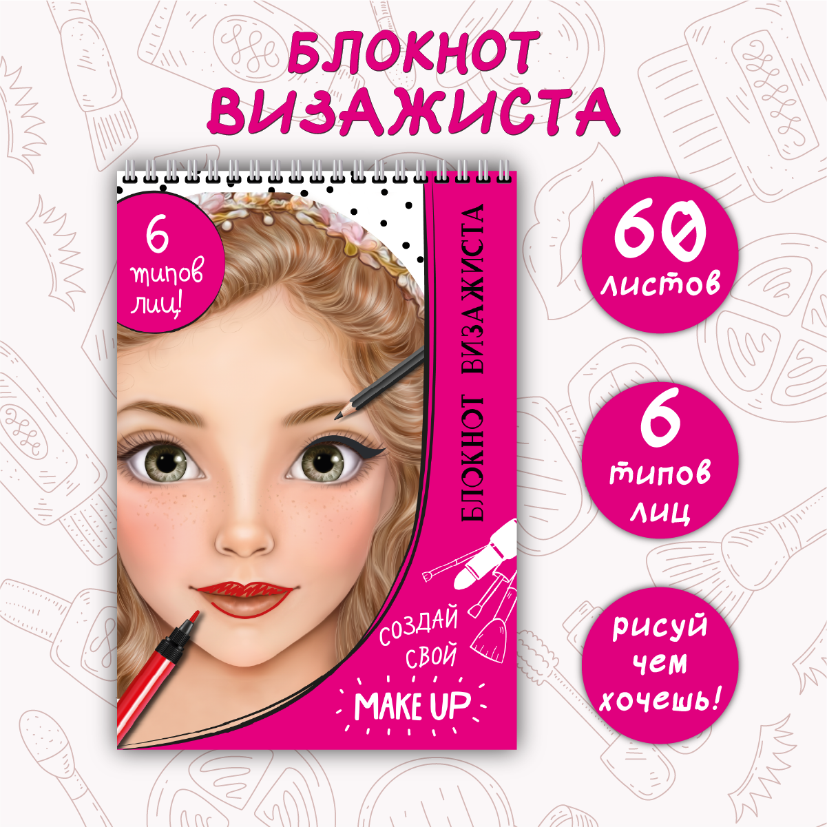 Раскраска для девочки Макияж Блокнот визажиста интересное: