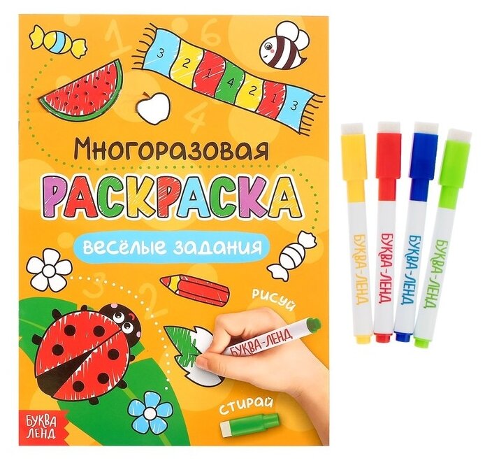 Купить Раскраска многоразовая "Рисуй-стирай. Весёлые задания" 12 стр.