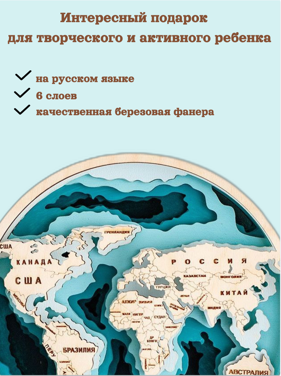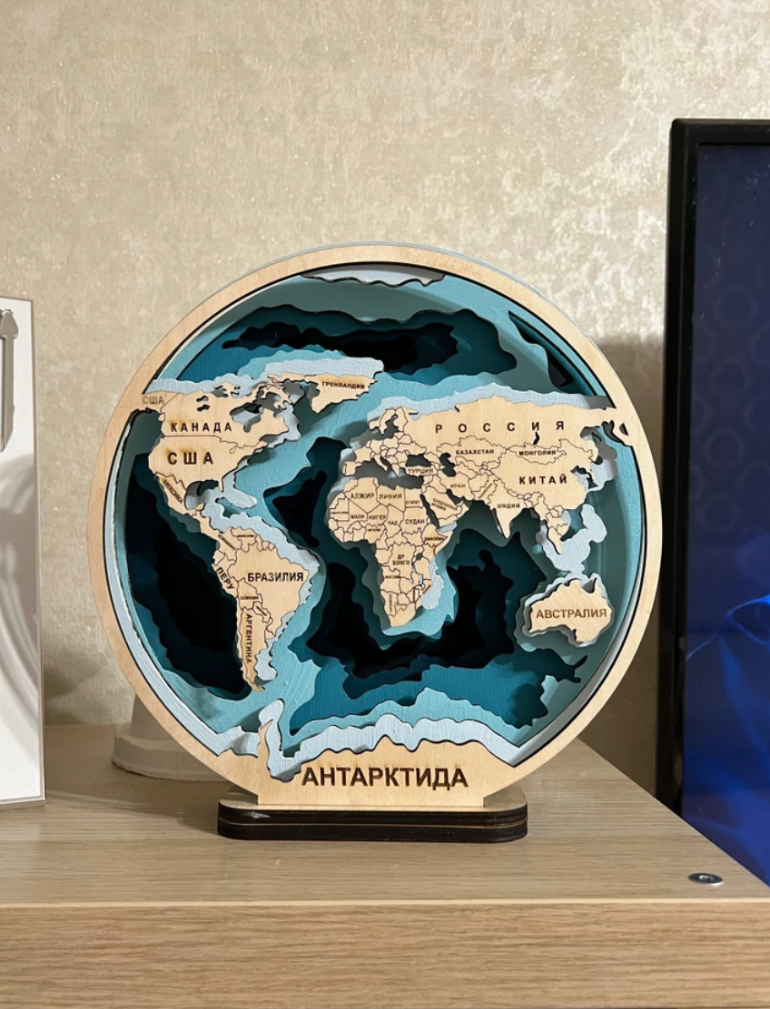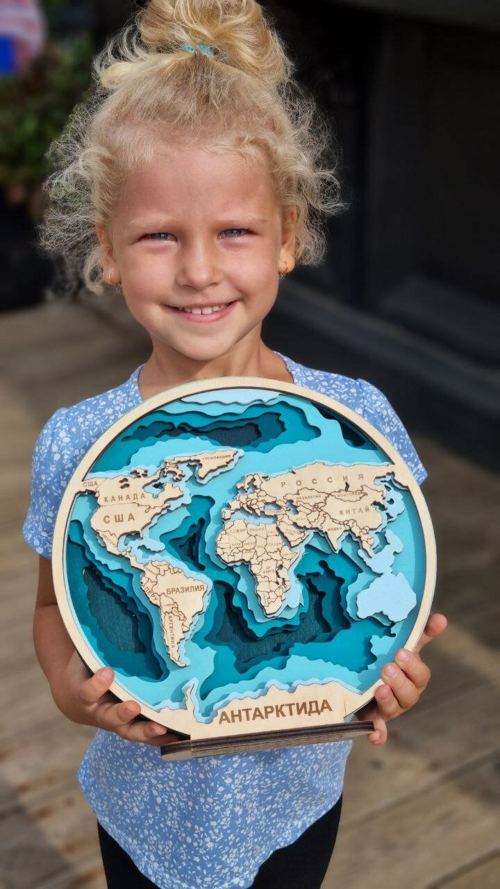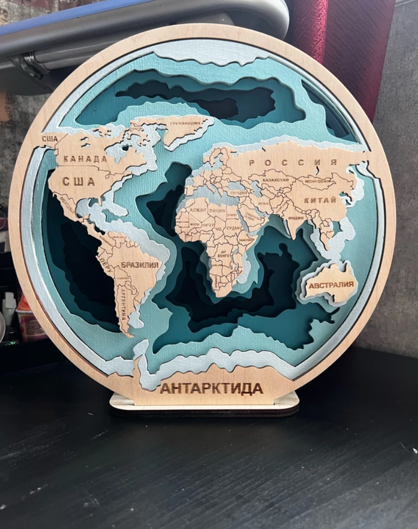 Подарочный набор для росписи/3D раскраска из дерева "Карта Мира" на русском (с красками) интересное: