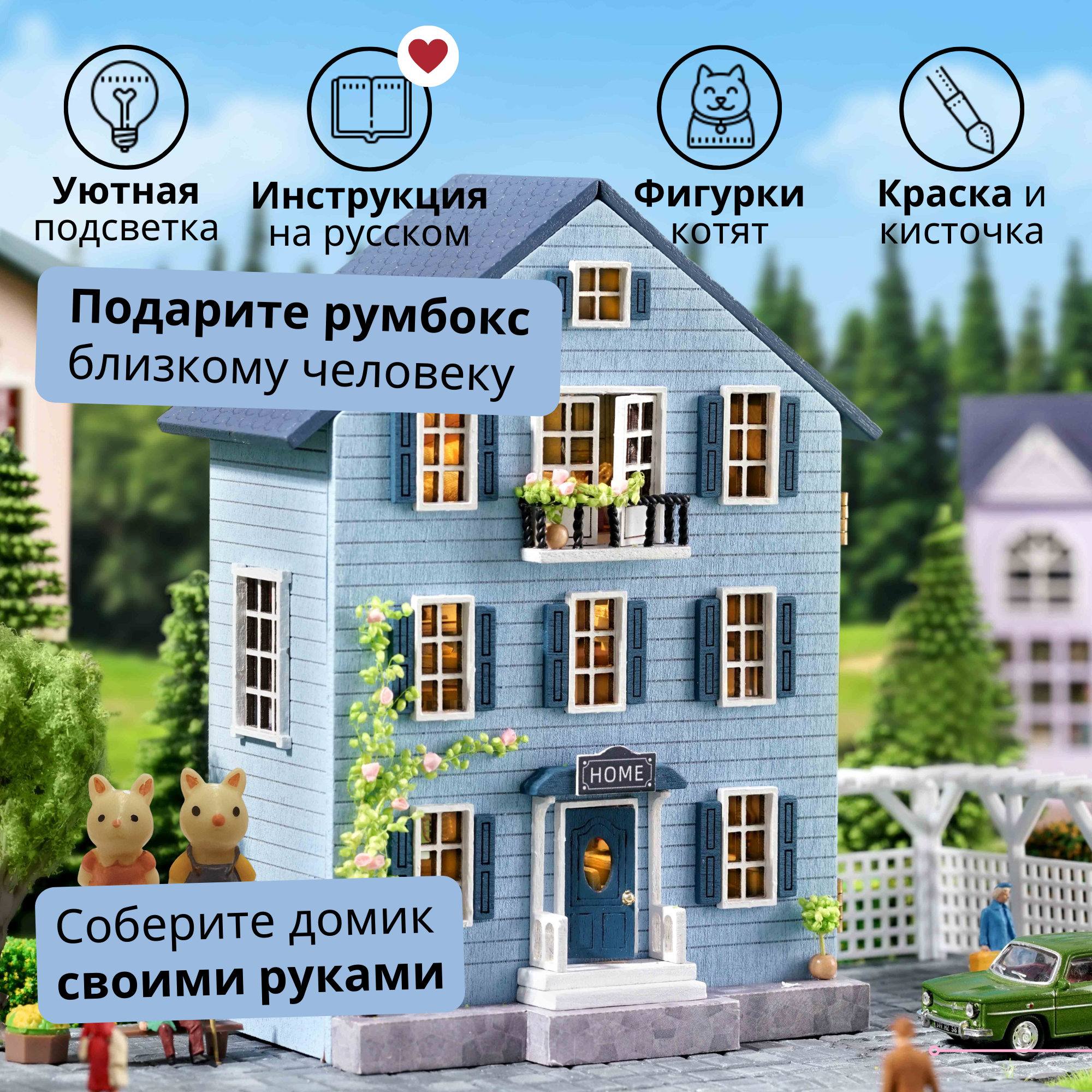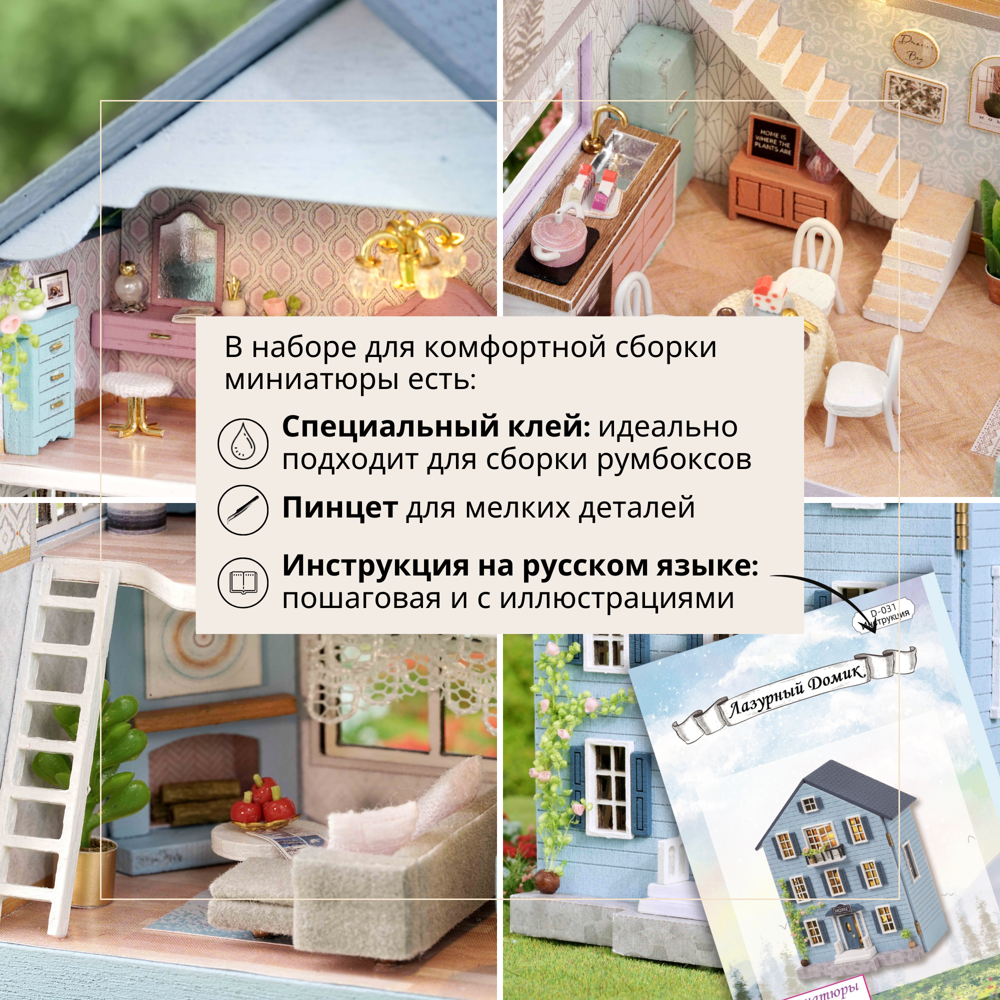 Подарочный Интерьерный конструктор (Румбокс) Yarvita "Лазурный Домик" миниатюра DIY House интересное: