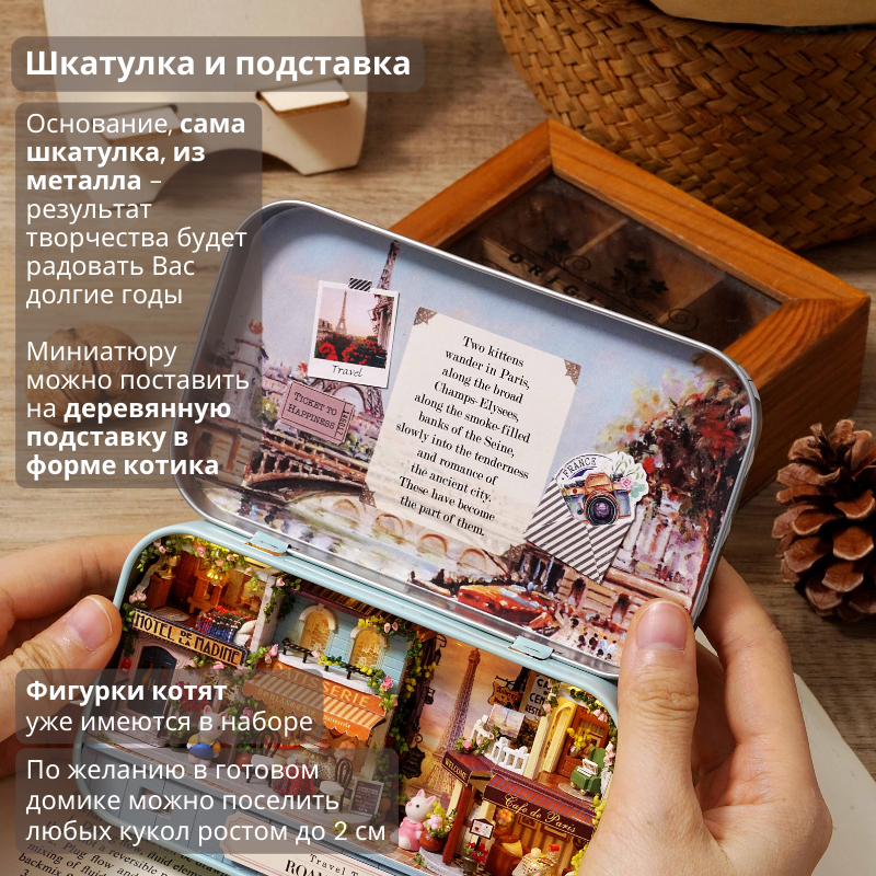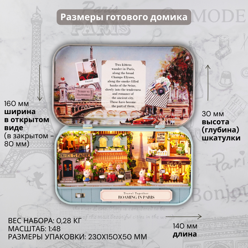Купить Подарочный Интерьерный конструктор (Румбокс) Yarvita Домик в шкатулке "Прогулка по Парижу" миниатюра DIY House