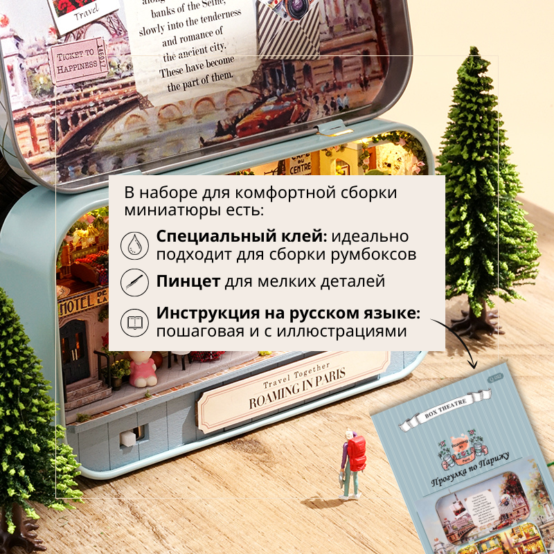 СохранитьПодарочный Интерьерный конструктор (Румбокс) Yarvita Домик в шкатулке "Прогулка по Парижу" миниатюра DIY House интересное: