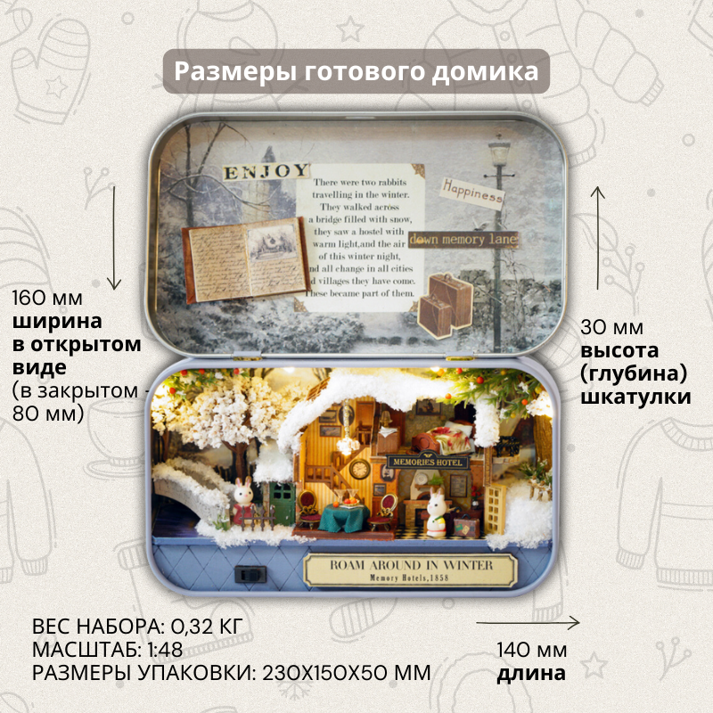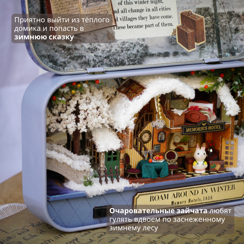 СохранитьПодарочный Интерьерный конструктор (Румбокс) Yarvita Домик в шкатулке "Зимняя Прогулка" миниатюра DIY House интересное: