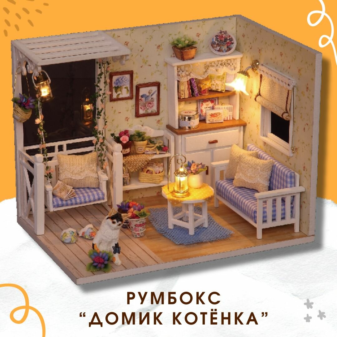 Купить Интерьерный конструктор (Румбокс) с подсветкой "Домик котенка", новогодний подарочный набор для творчества