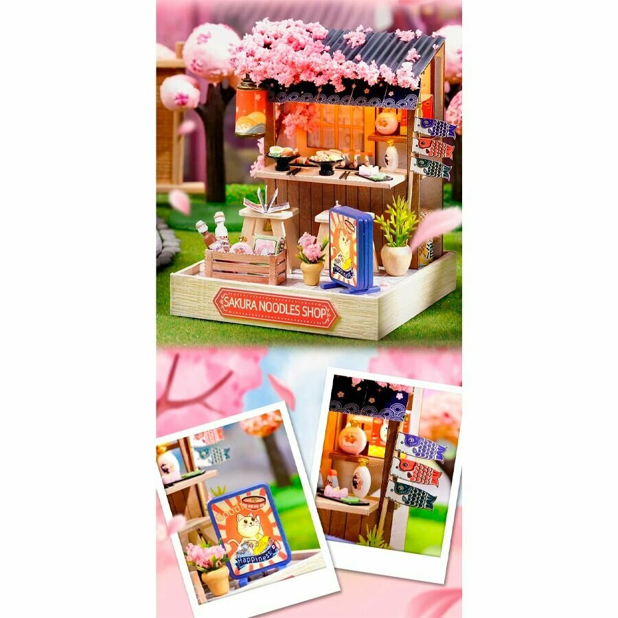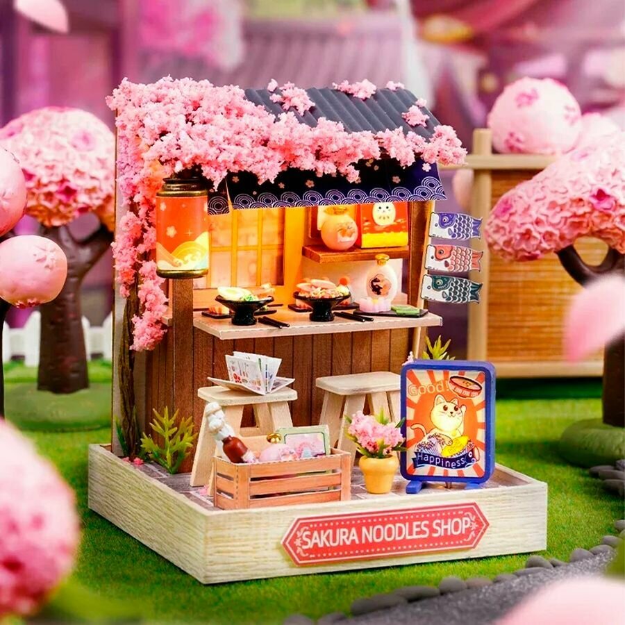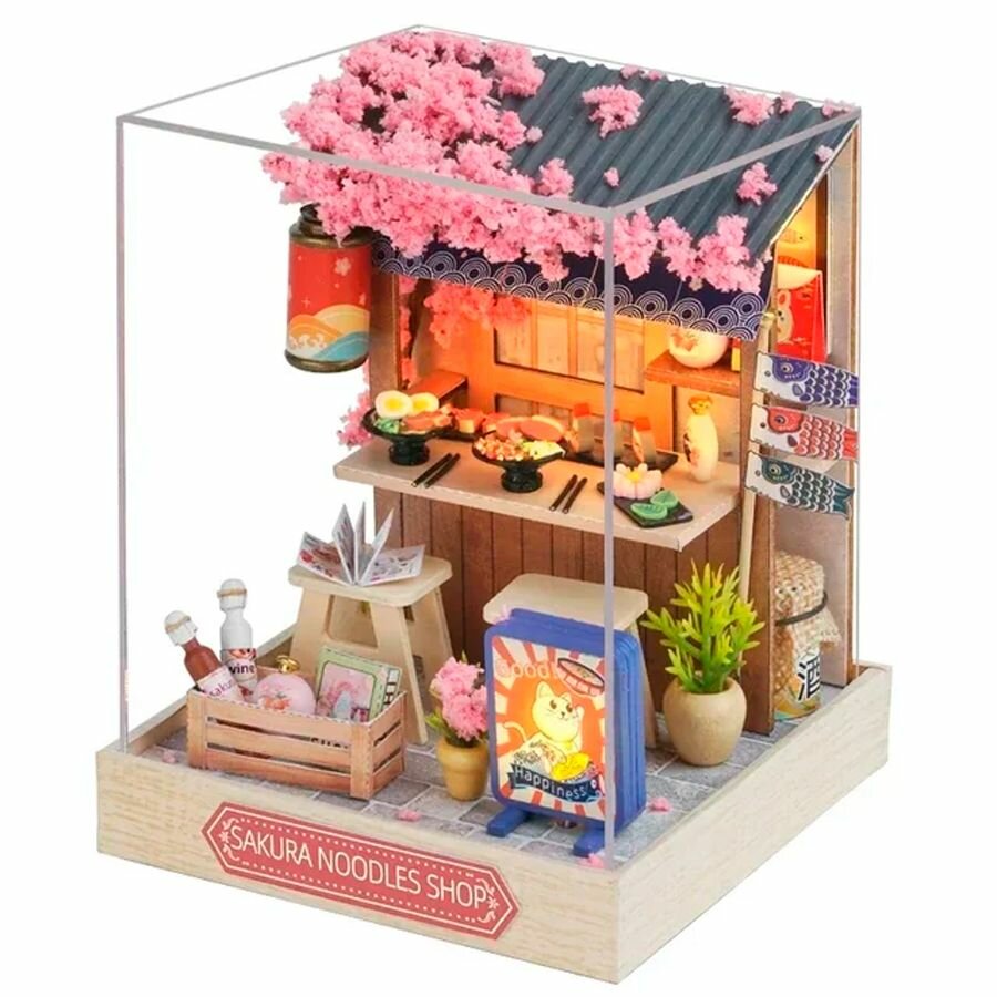 Интерьерный конструктор румбокс "Цветущая сакура" лапшичная, DIY House, с подсветкой