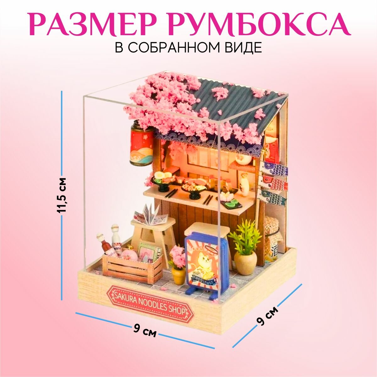 Интерьерный конструктор румбокс "Цветущая сакура" лапшичная, DIY House, с подсветкой, в яркой подарочной упаковке