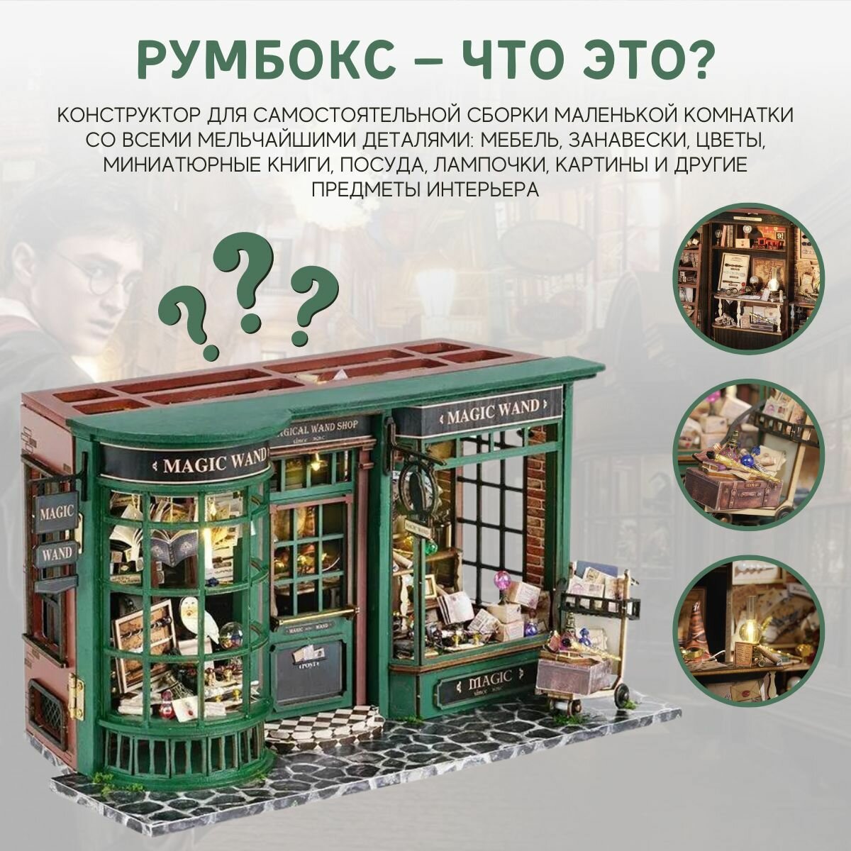Конструктор интерьерный с подсветкой "Магическая лавка" по мотивам Гарри Поттера, румбокс, миниатюра DIY House, набор в подарок для детей и взрослых