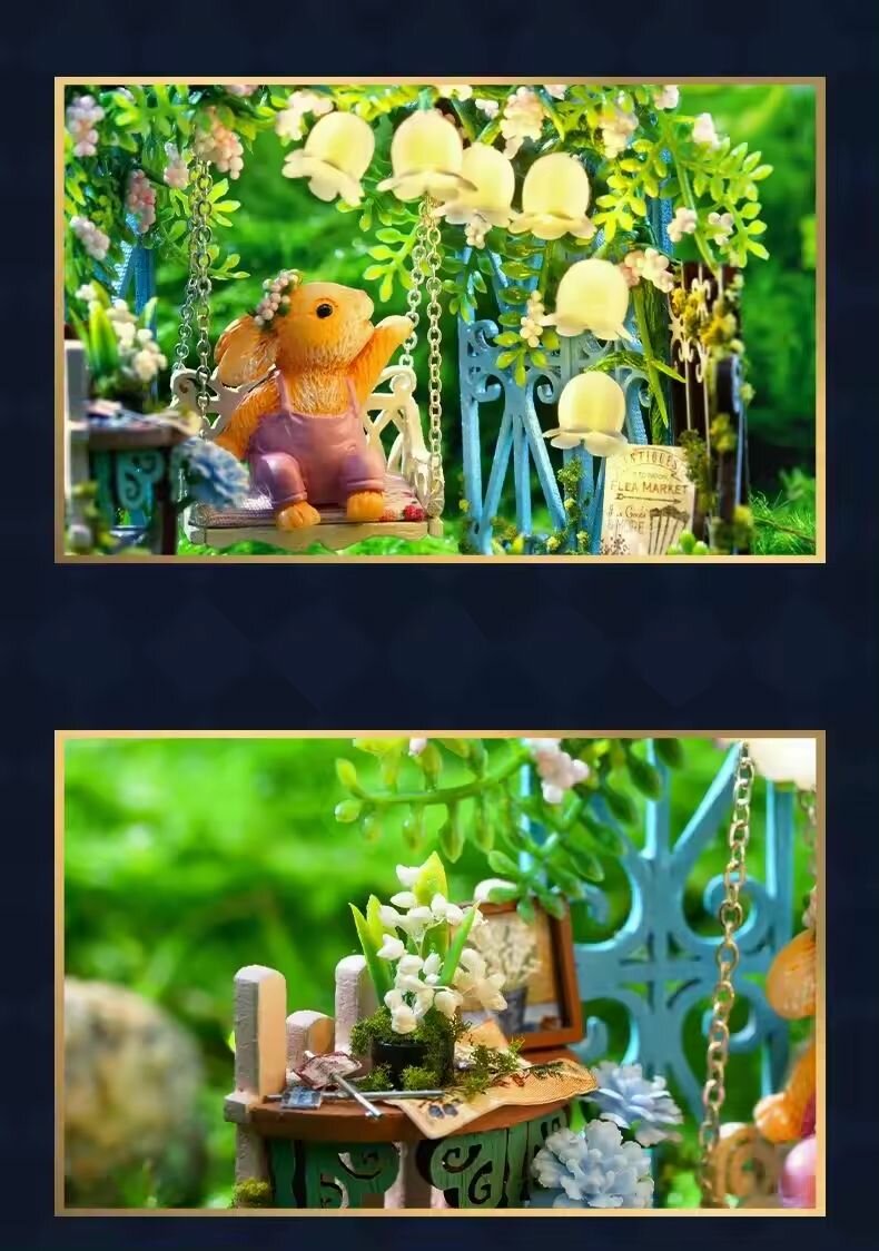 Музыкальный интерьерный конструктор с подсветкой "Весенний сад" с зайчатами, румбокс, миниатюра DIY House, набор в подарок для детей и взрослых