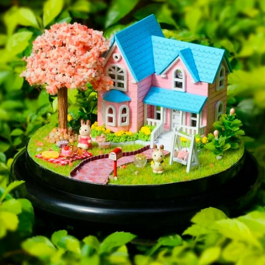 СохранитьМузыкальный интерьерный конструктор с подсветкой "Весенний сад" с зайчатами, румбокс, миниатюра DIY House, набор в подарок для детей и взрослых интересное: