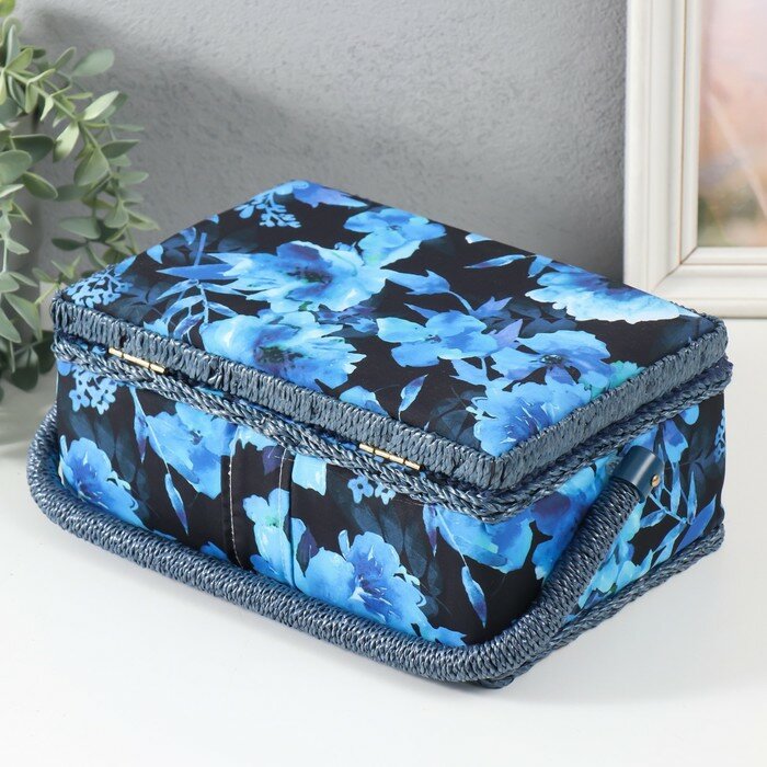 Шкатулка для рукоделия "Голубые цветы на синем" 24х16х11 см интересное: