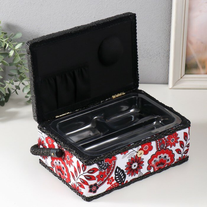 Шкатулка для рукоделия "Народный цветочный узор" 24х16х11 см интересное: