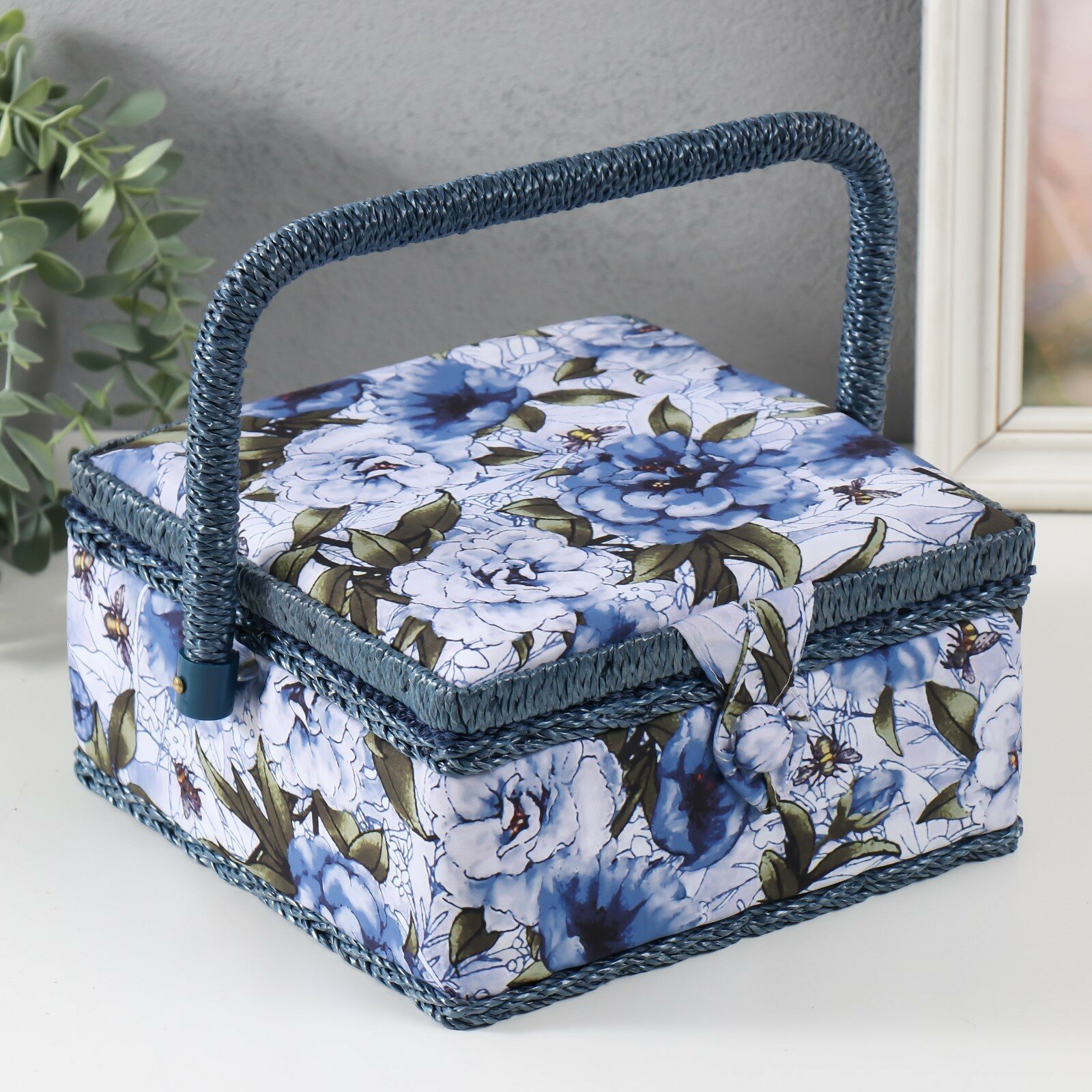 Купить Шкатулка для рукоделия "Бело-голубые пионы" 20х20х11 см