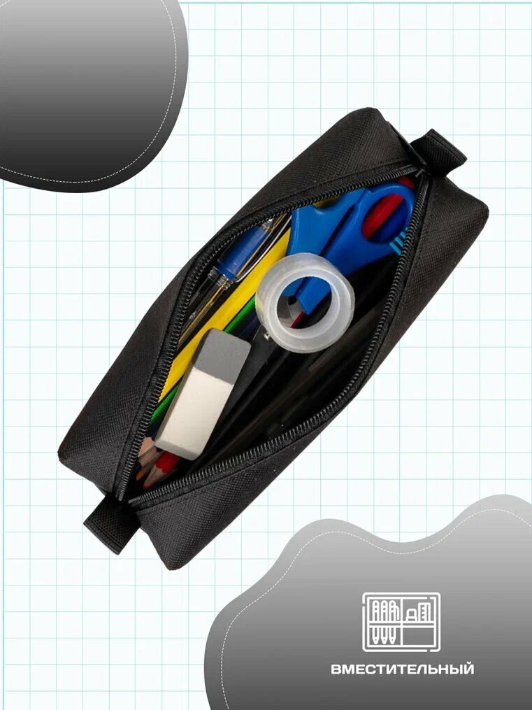 СохранитьПенал школьный для девочек и мальчиков AXLER маленький мягкий для канцелярии карандашей ручек, детский для школы и подростков, черный, косметичка интересное: