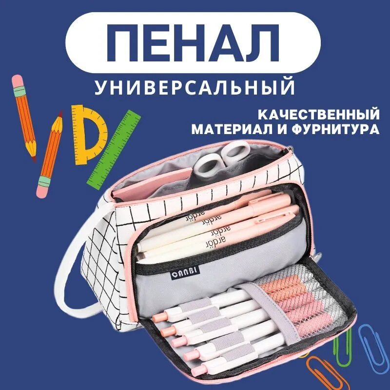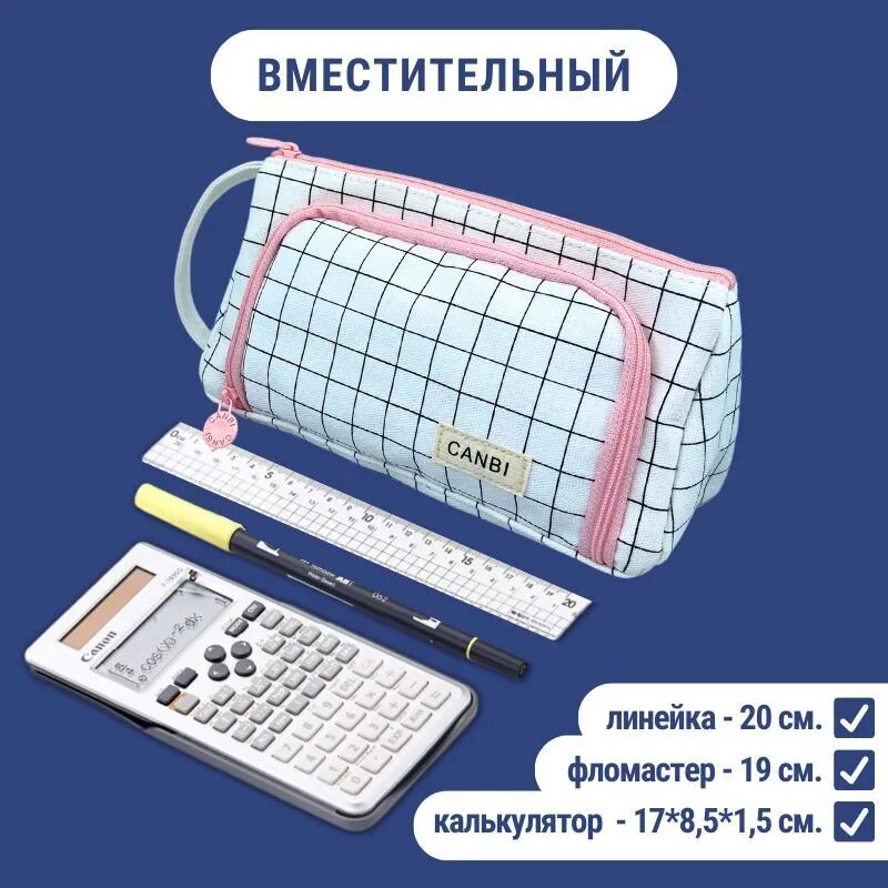 Пенал школьный для мальчиков и девочек в клетку CANBI, белый интересное: