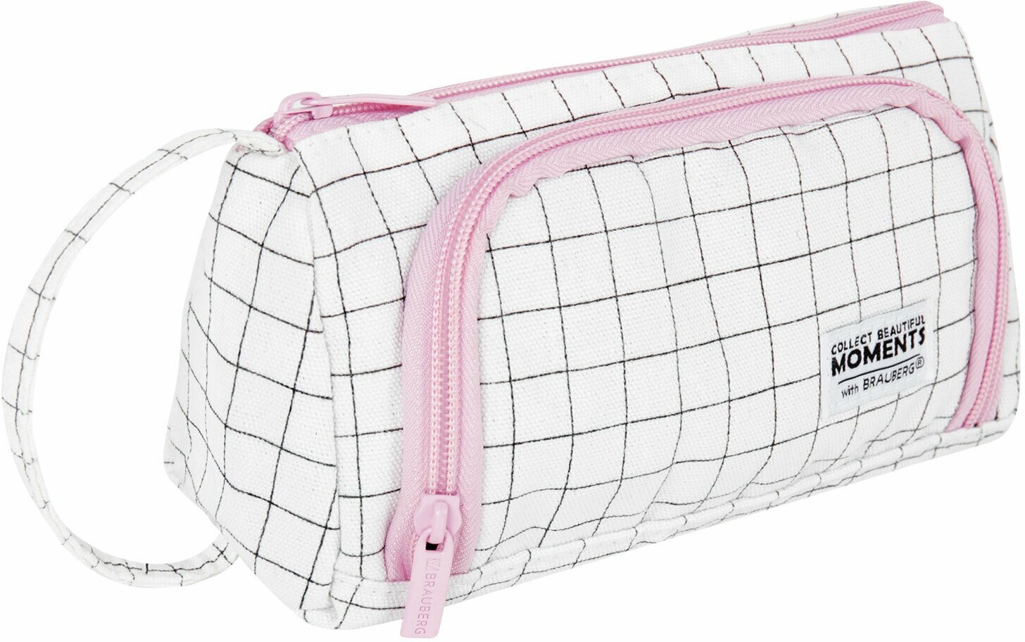 Пенал-косметичка BRAUBERG с ручкой, 1 откидная планка, полиэстер, 22x10х8 см, "Checkered white"