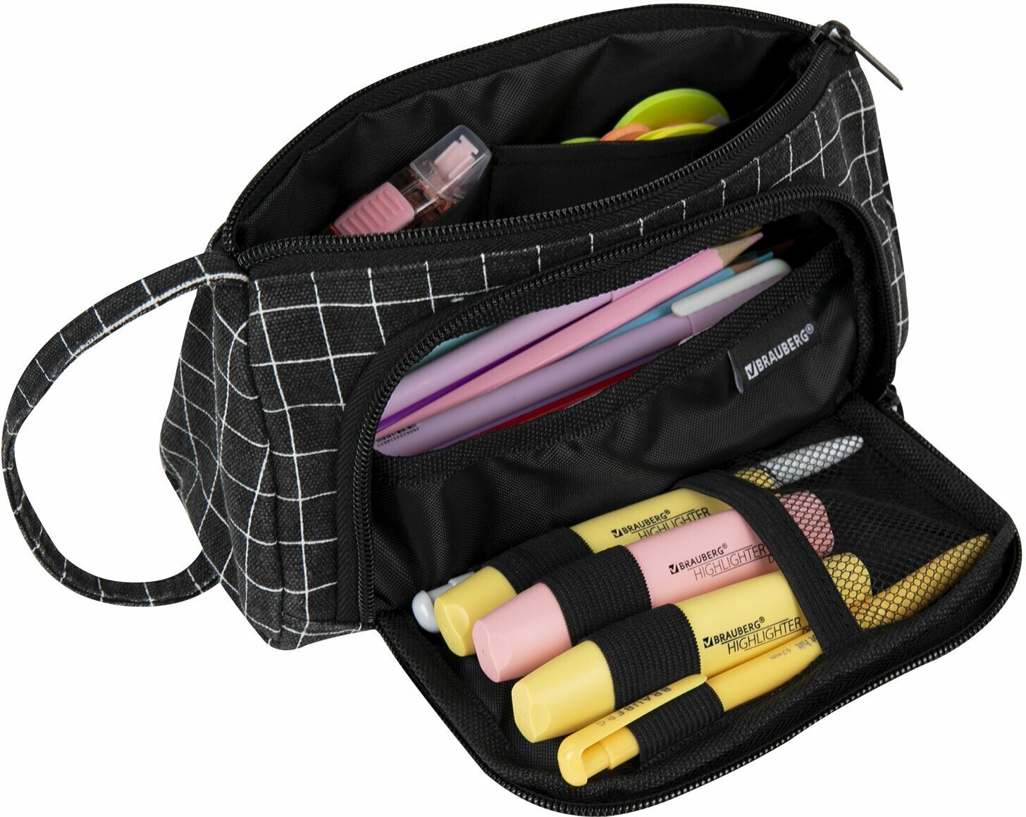 Пенал-органайзер Brauberg Большой, 1 отделение,1 откидная планка, ткань, 21x15x6 см, Black, 272348