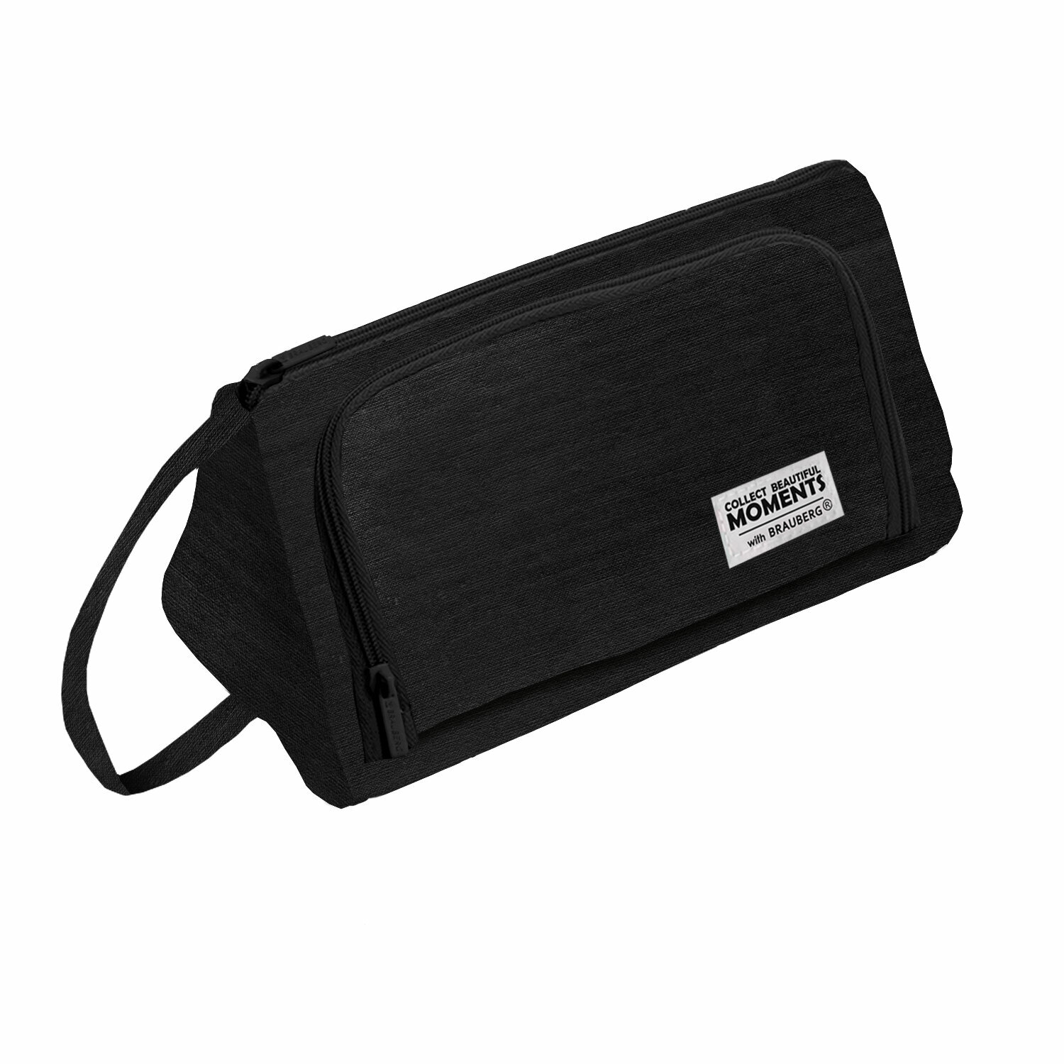 Пенал-косметичка BRAUBERG с ручкой, 1 откидная планка, полиэстер, 22x10х8см, Black, 272339 интересное: