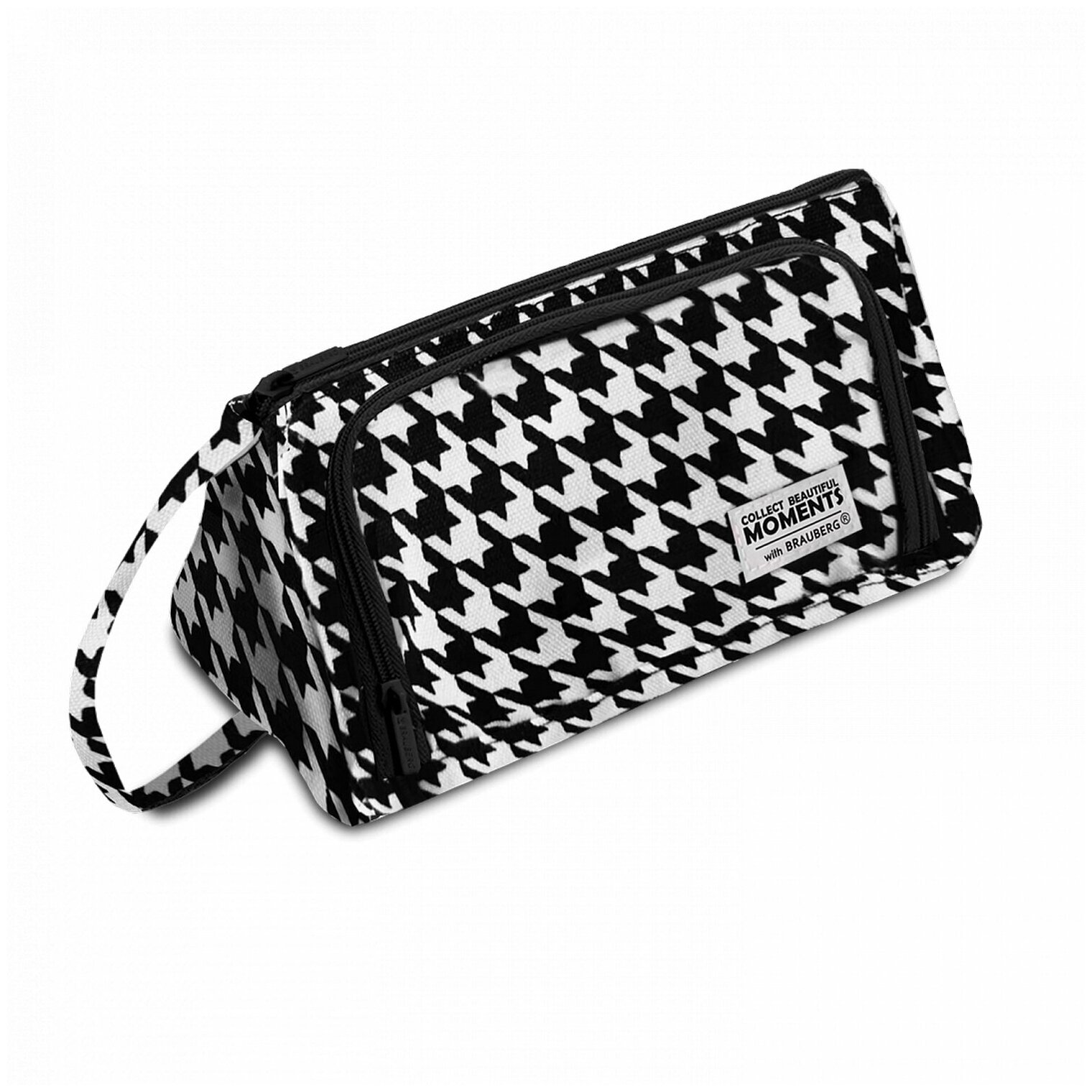 Пенал-косметичка BRAUBERG с ручкой, 1 откидная планка, полиэстер, 22x10х8 см, "Houndstooth", 271560 интересное: