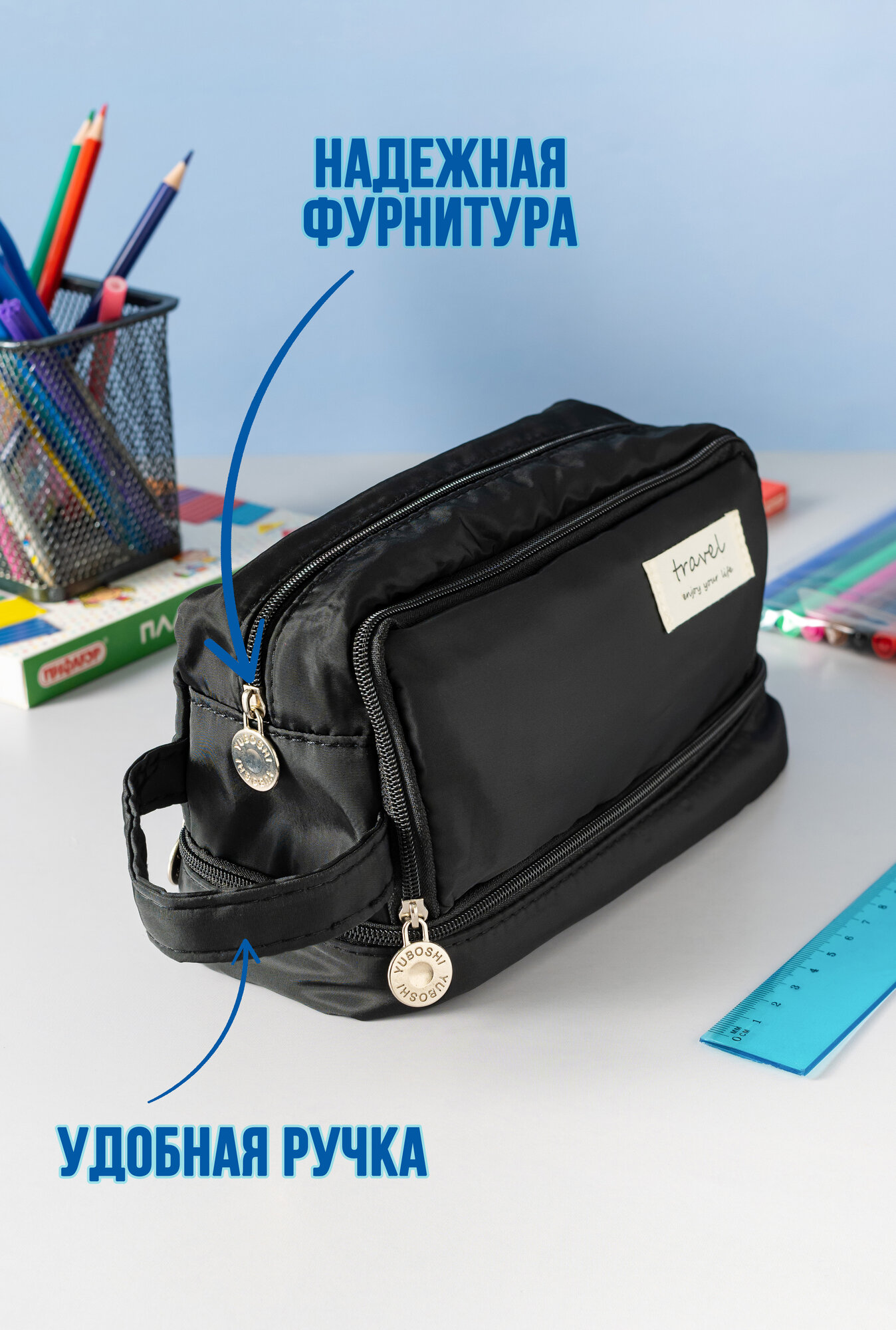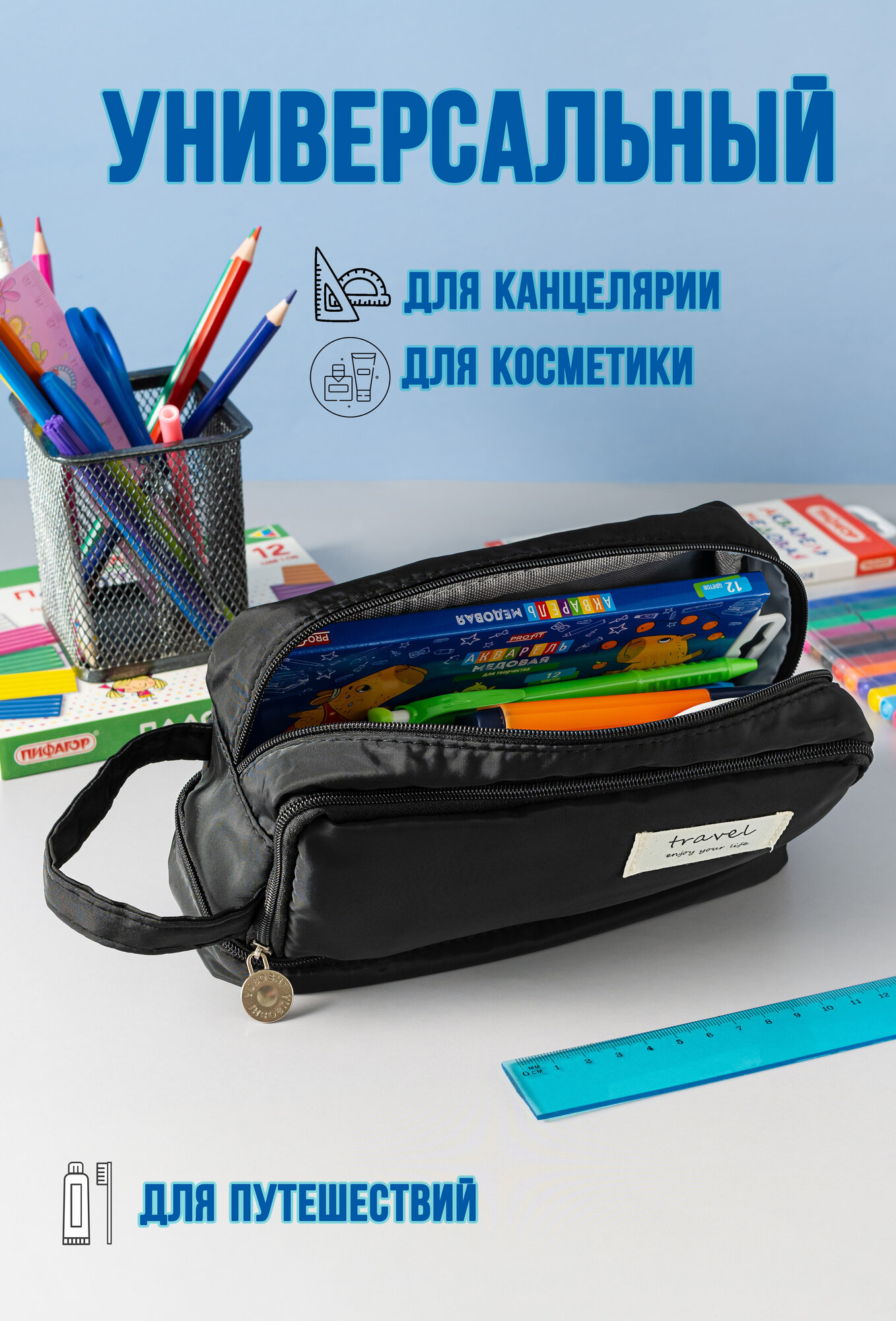 Ниже Вы можете прочитать отзывы на Пенал школьный подростковый вместительный черного цвета косметичка 3 отсека на молнии для девочек и мальчика, ознакомится с подробными характеристиками, посмотреть интересные обзоры и фотографии на Пенал школьный подростковый вместительный черного цвета косметичка 3 отсека на молнии для девочек и мальчика.