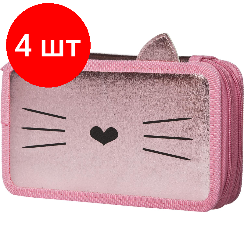 Купить Комплект 4 штук, Пенал Kitty 2 отд., кож/зам голография, 190х110 мм, ПКЗ 11-112