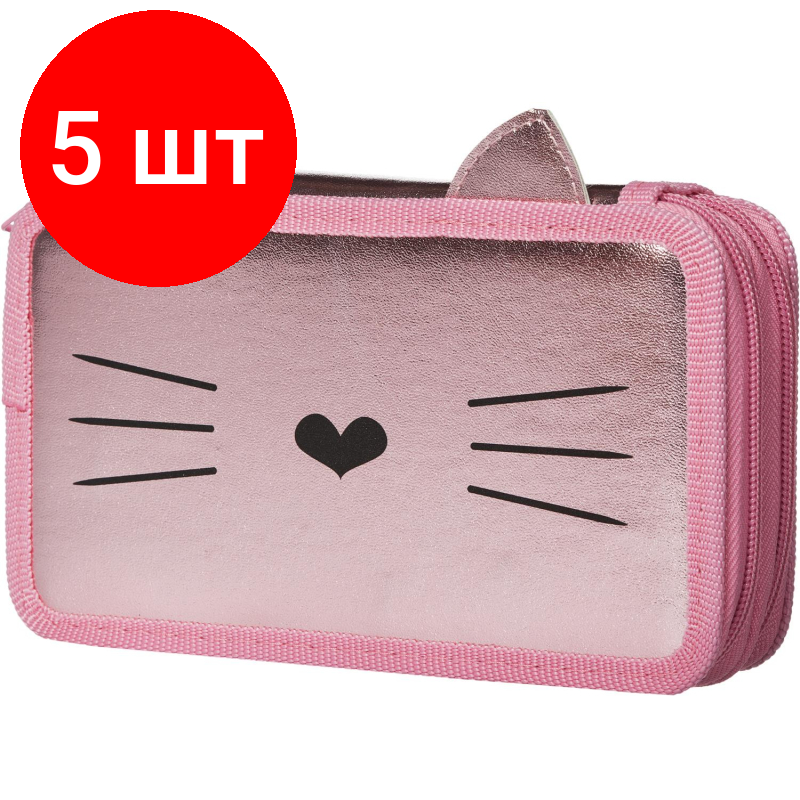 Купить Комплект 5 штук, Пенал Kitty 2 отд., кож/зам голография, 190х110 мм, ПКЗ 11-112