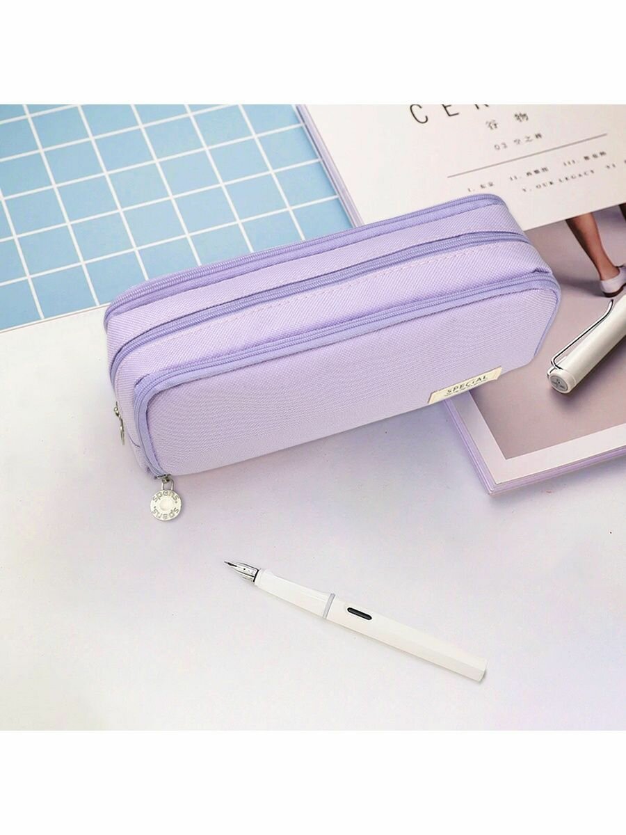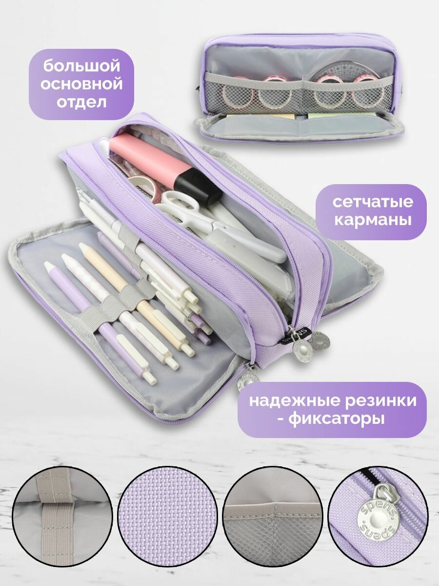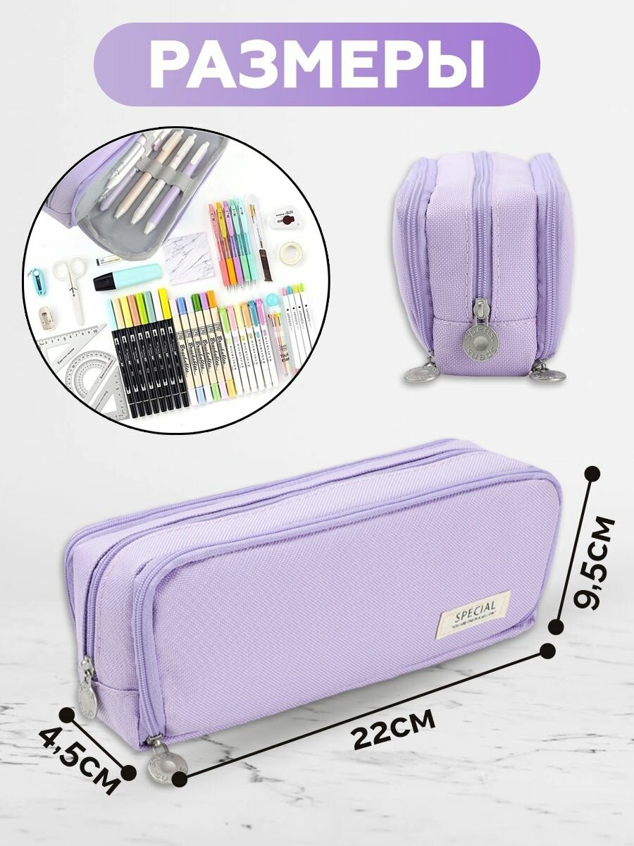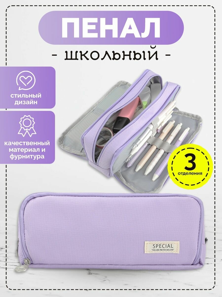 Пенал для девочек и мальчиков 3 отдела на молнии для школы, сиреневый интересное: