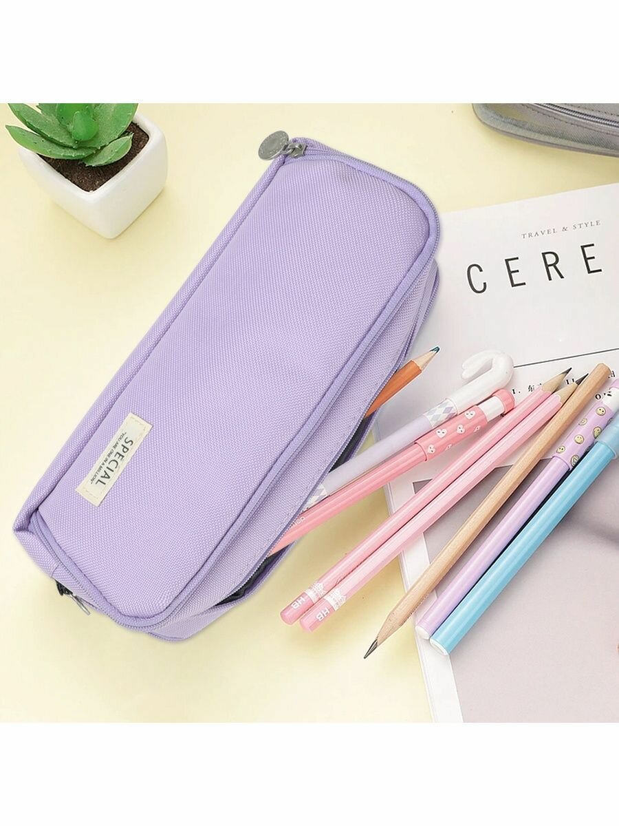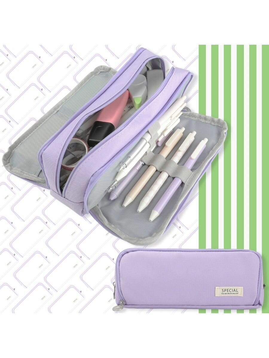 Купить Пенал для девочек и мальчиков 3 отдела на молнии для школы, сиреневый