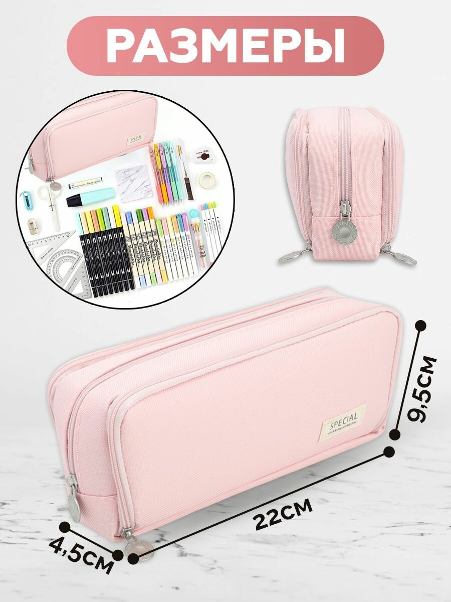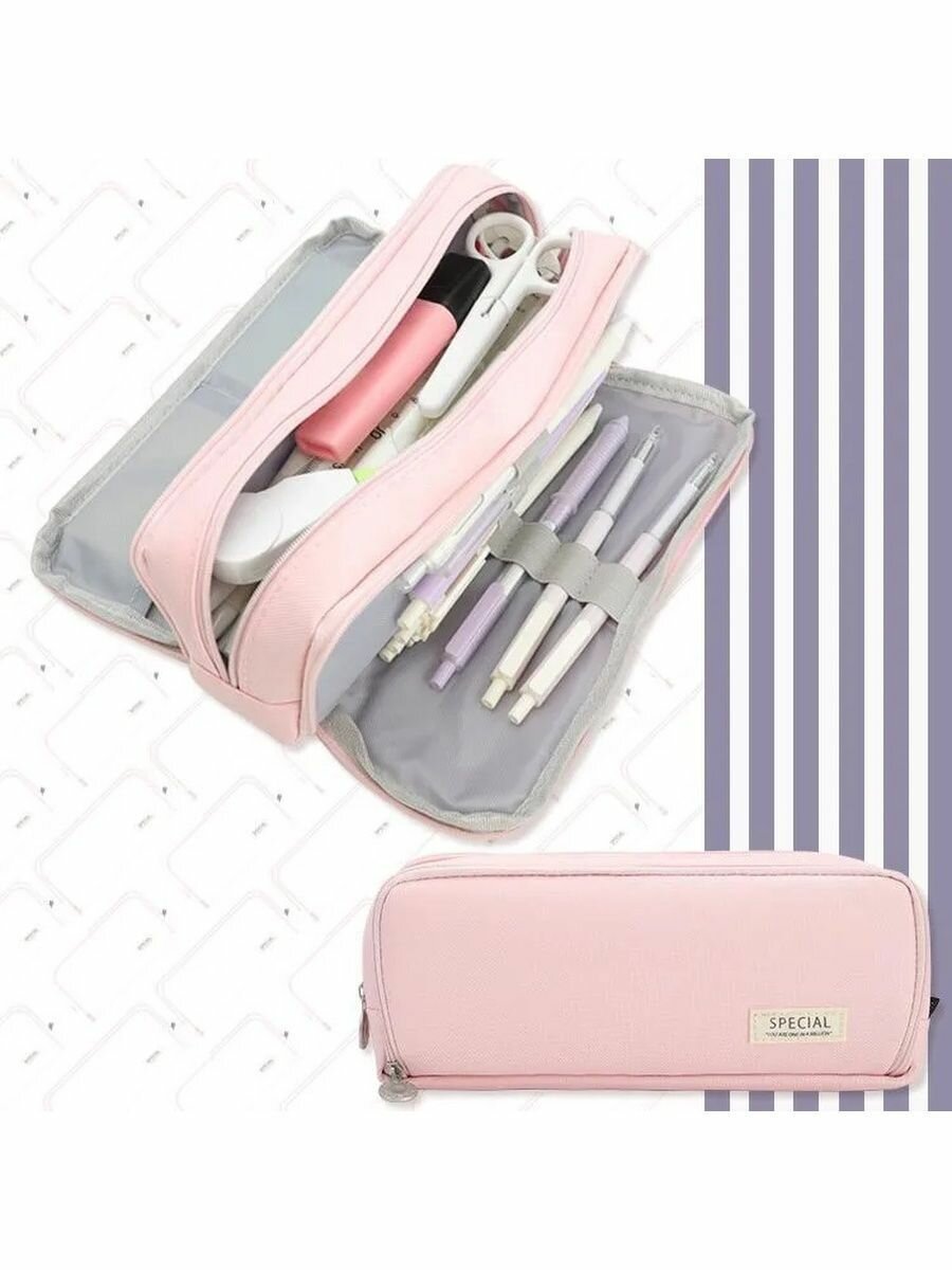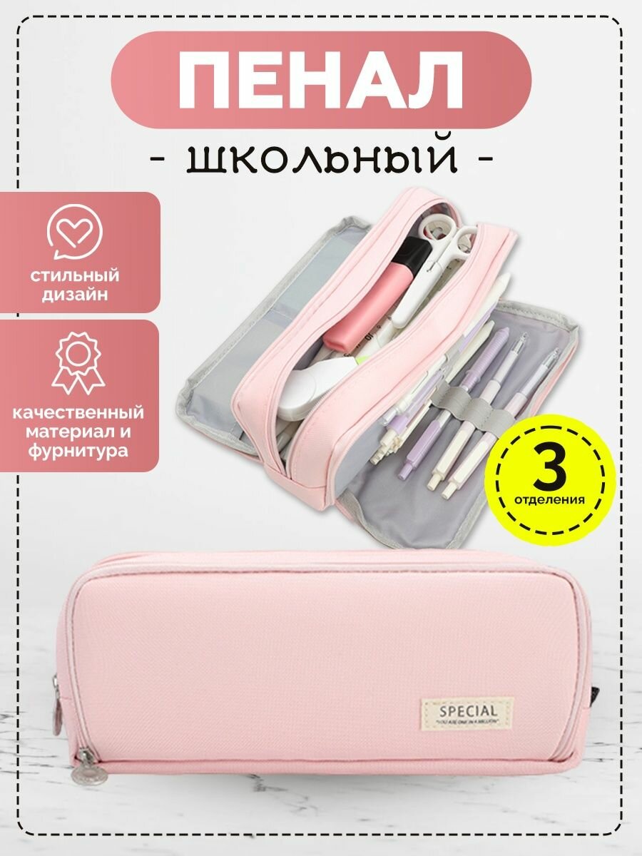 Пенал для девочек и мальчиков 3 отдела на молнии для школы, розовый интересное: