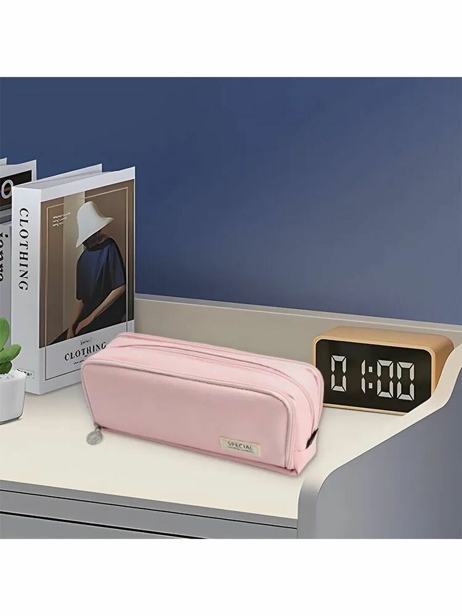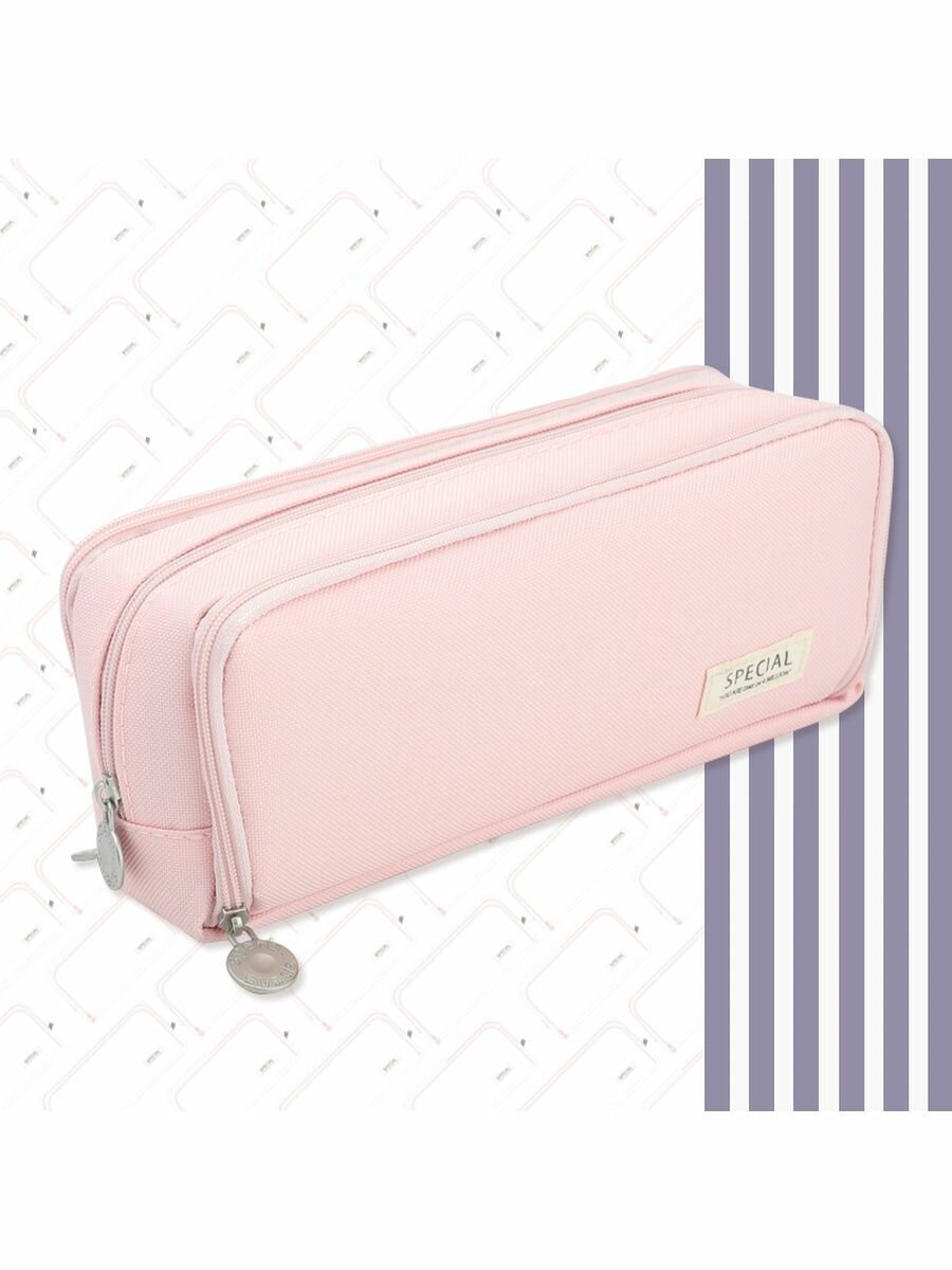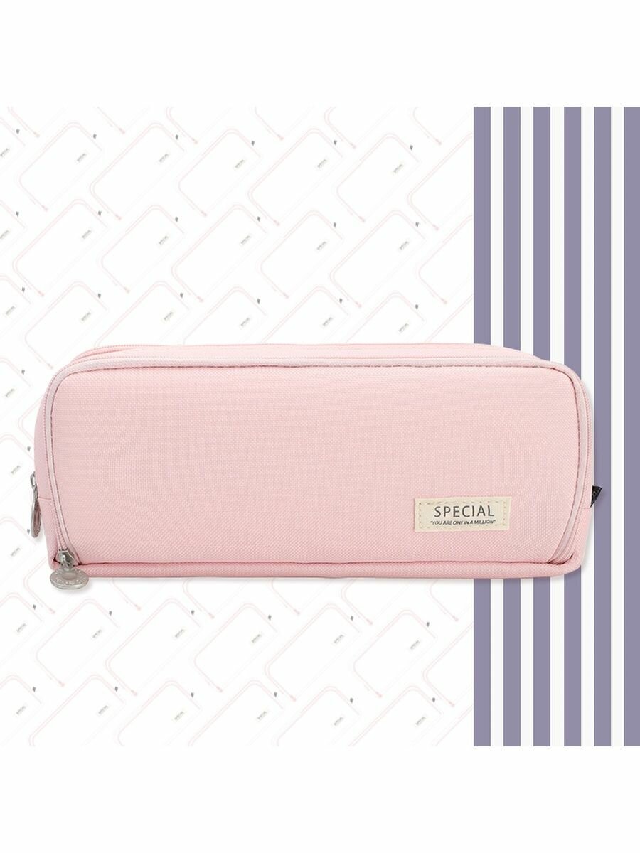 Пенал для девочек и мальчиков 3 отдела на молнии для школы, розовый интересное: