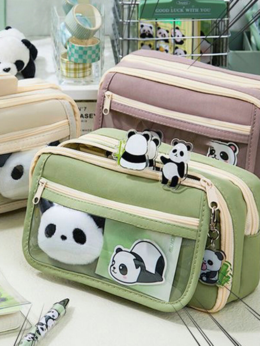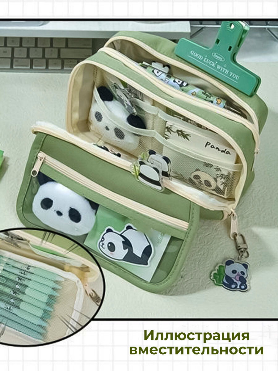 Купить Школьный детский пенал для подростков с пандой - Эстетичный канцелярский органайзер на молнии, 2 отделения, зеленый