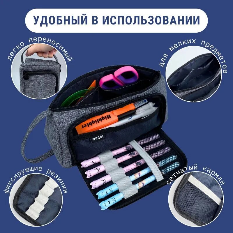 Пенал школьный для мальчиков и девочек CANBI, серый интересное: