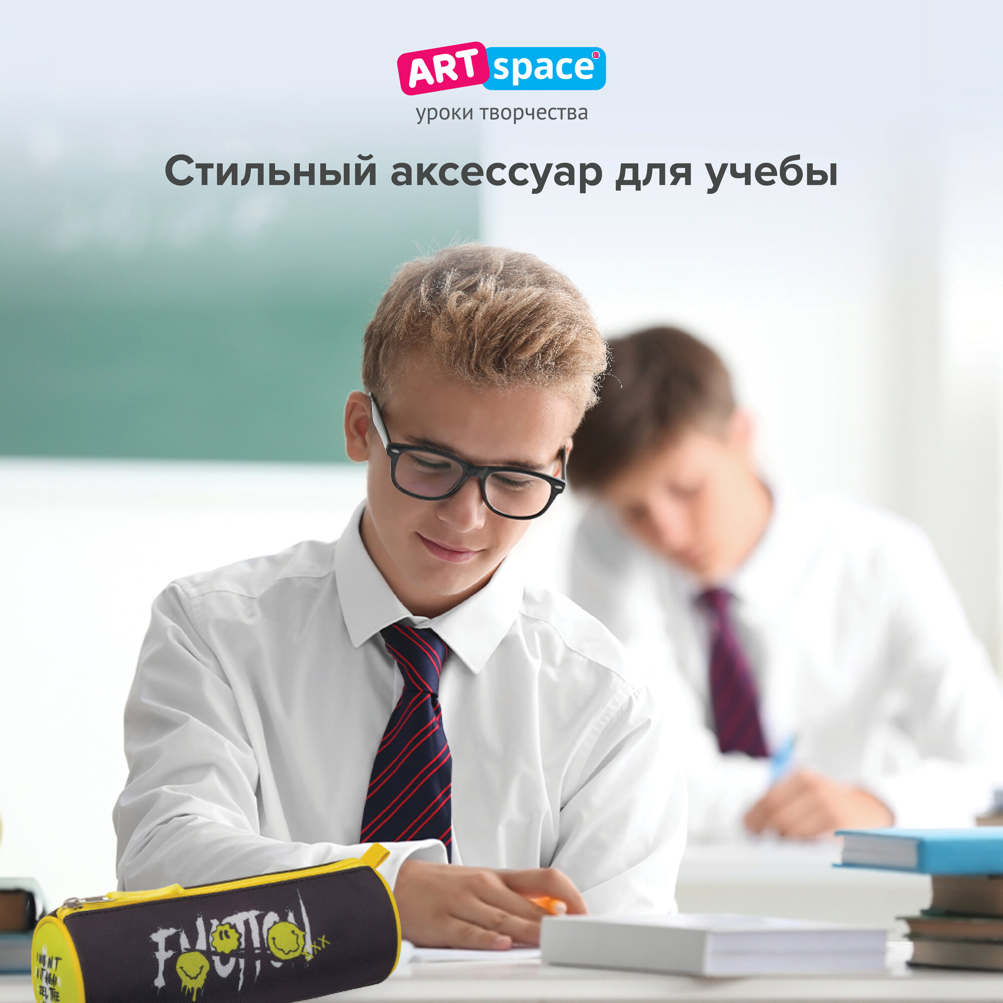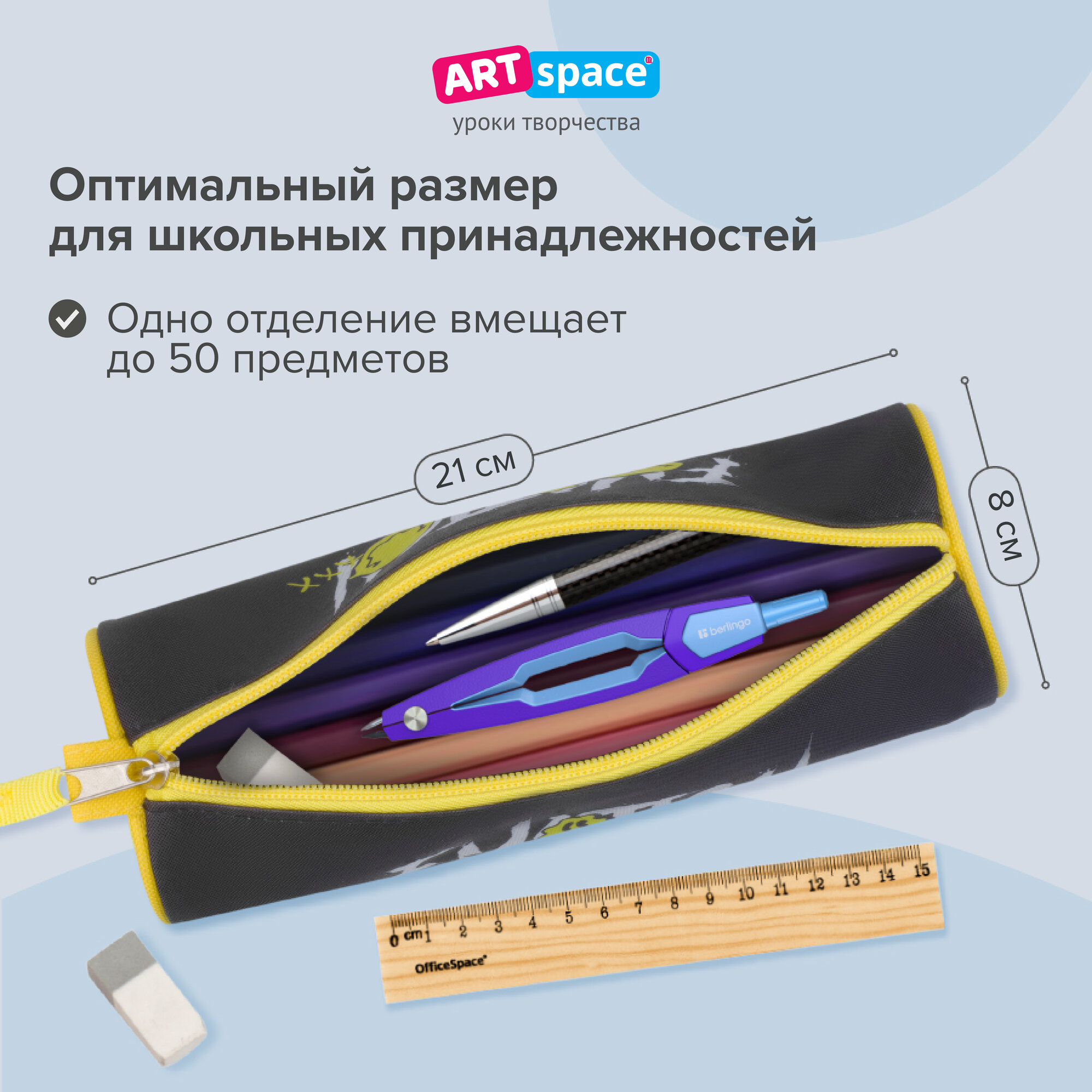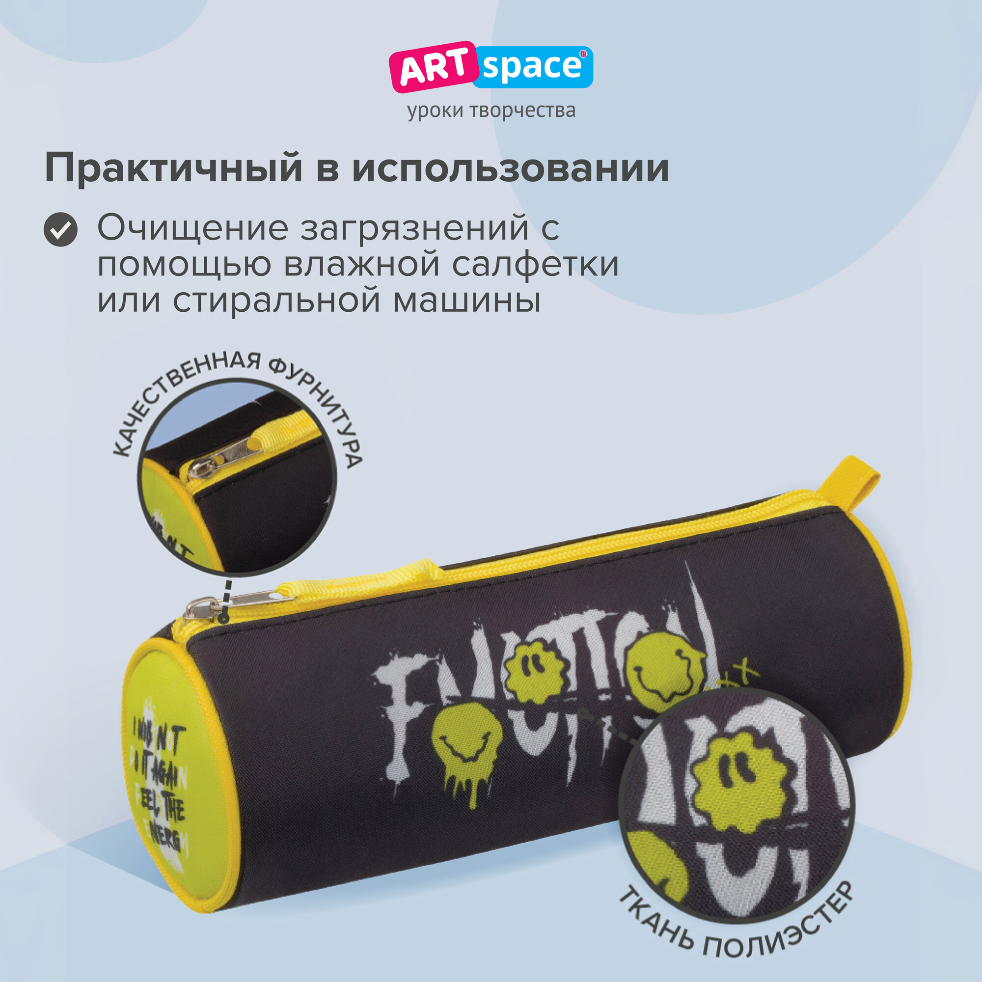 Пенал школьный ArtSpace серии Smile, полиэстер, 1 отделение, канцелярия для девочек, мальчиков, подростков, товары для школы интересное: