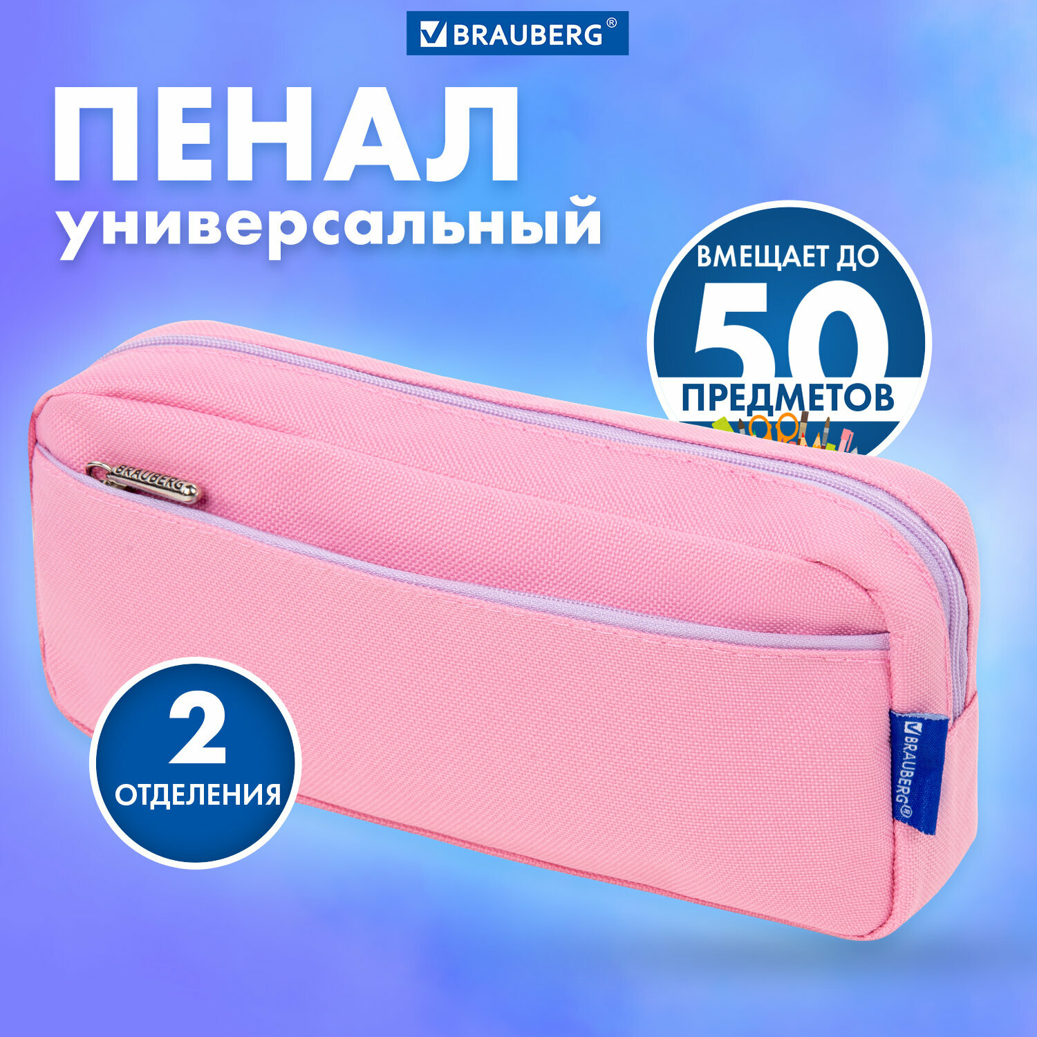 Купить Пенал мягкий Brauberg Pastel, 2 отделения, розовый, 21х9,5х5 см, 272276