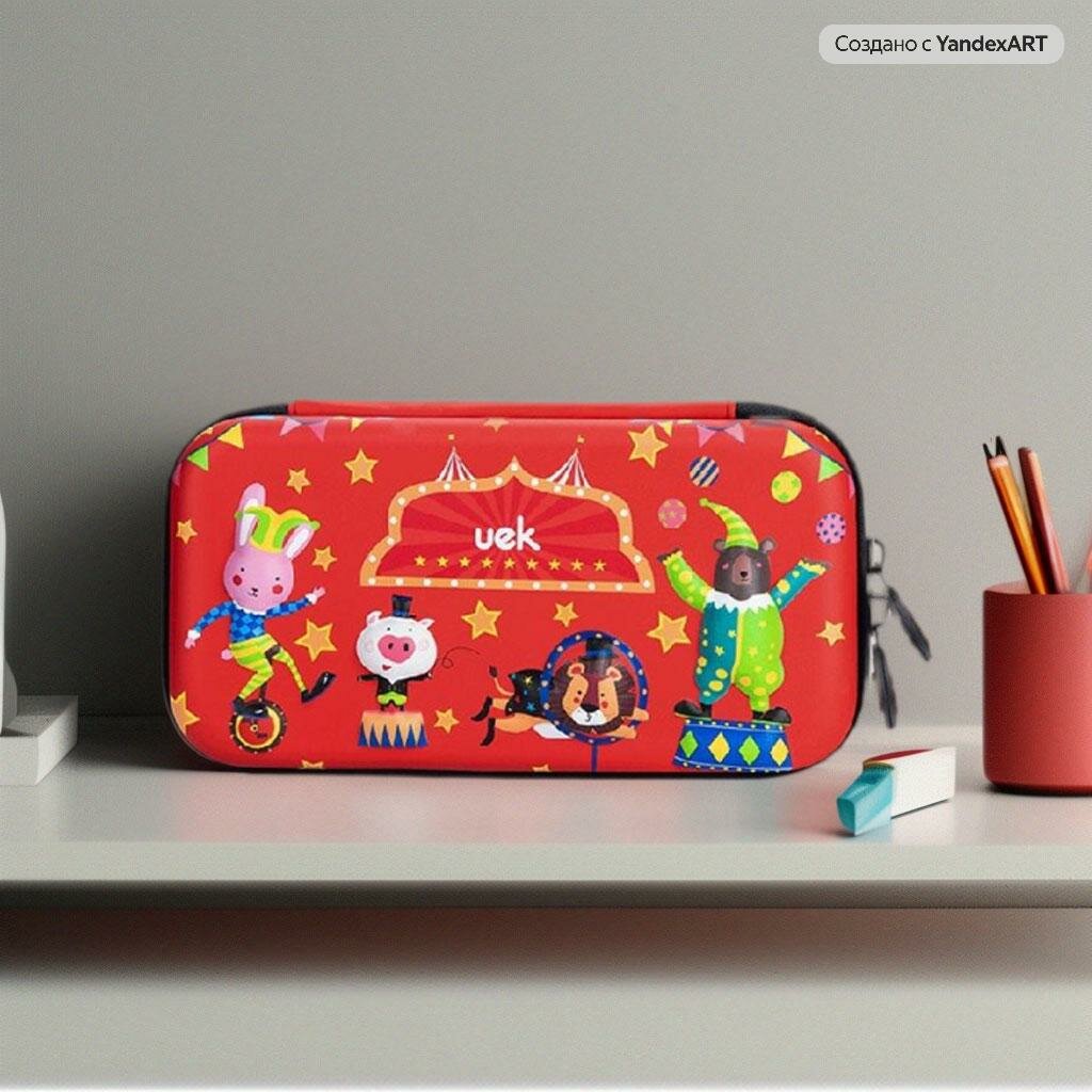 Пенал каркасный UEK Kids "Цирк", ЭВА, красный, 1 отделение, 24x14x5 см