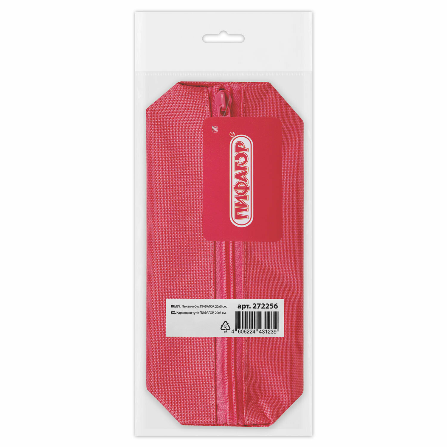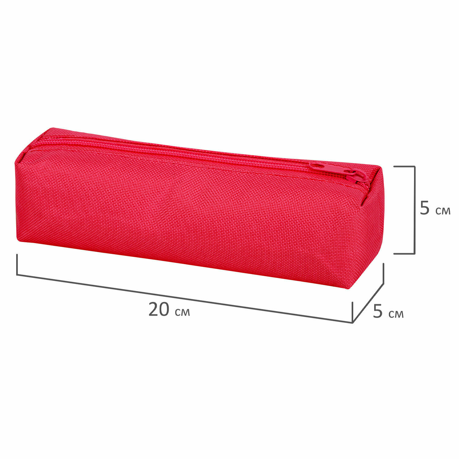 Комплект 5 шт, Пенал-тубус пифагор на молнии, текстиль, красный, 20х5 см, 104387