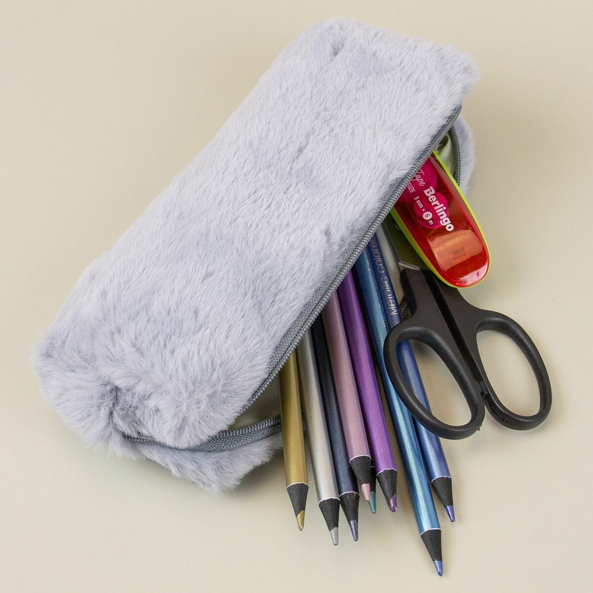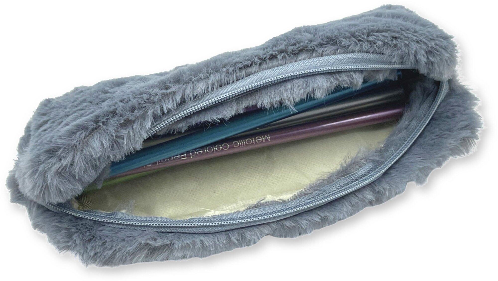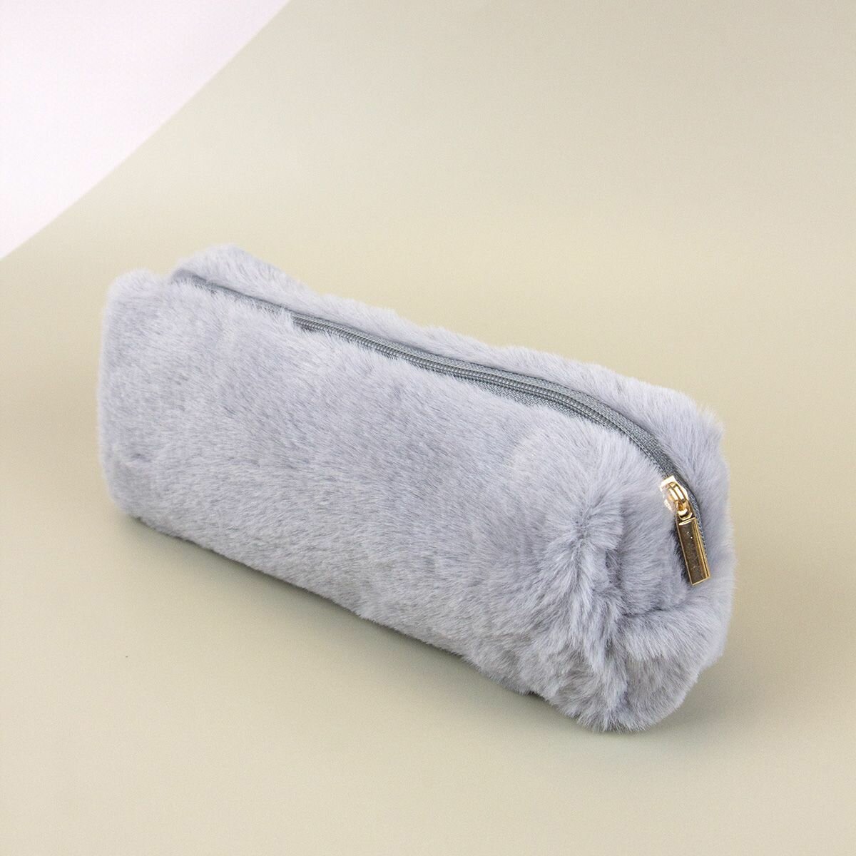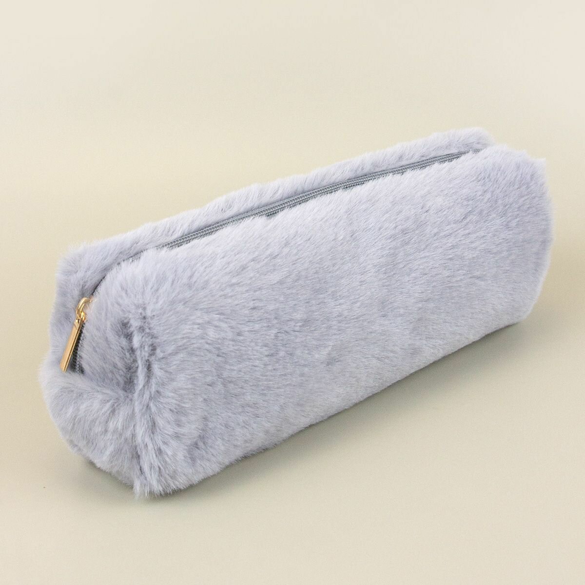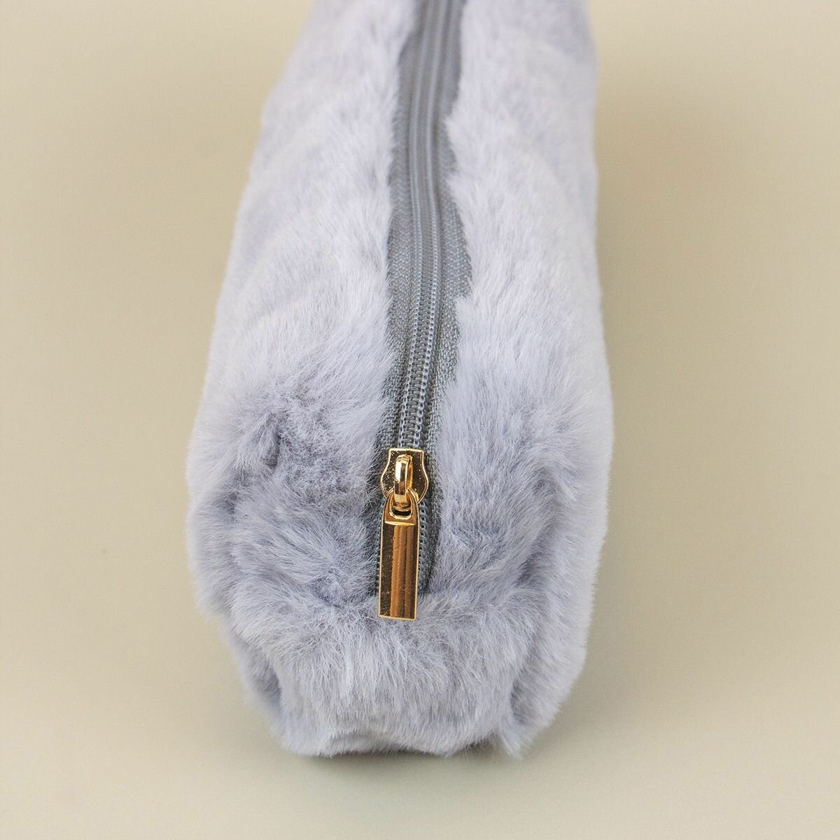 Купить Пенал плюшевый мех, пенал-косметичка однотонный - Серый