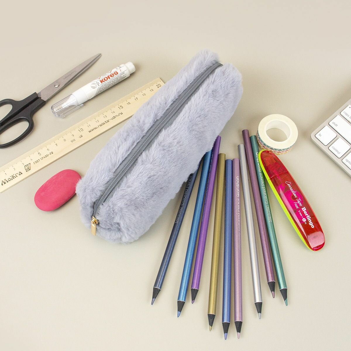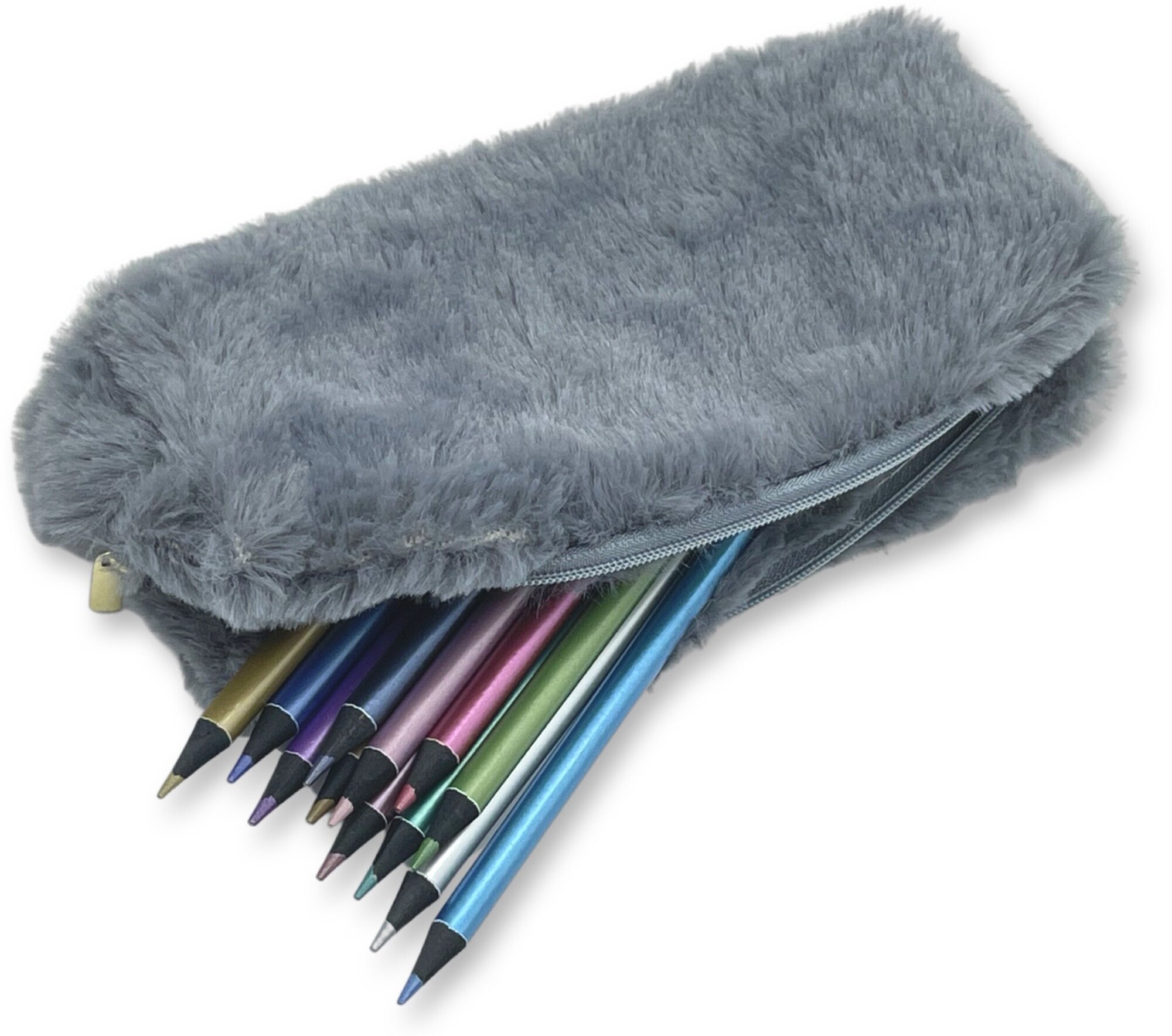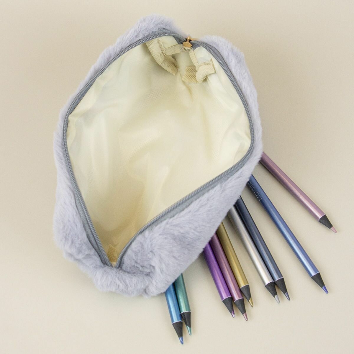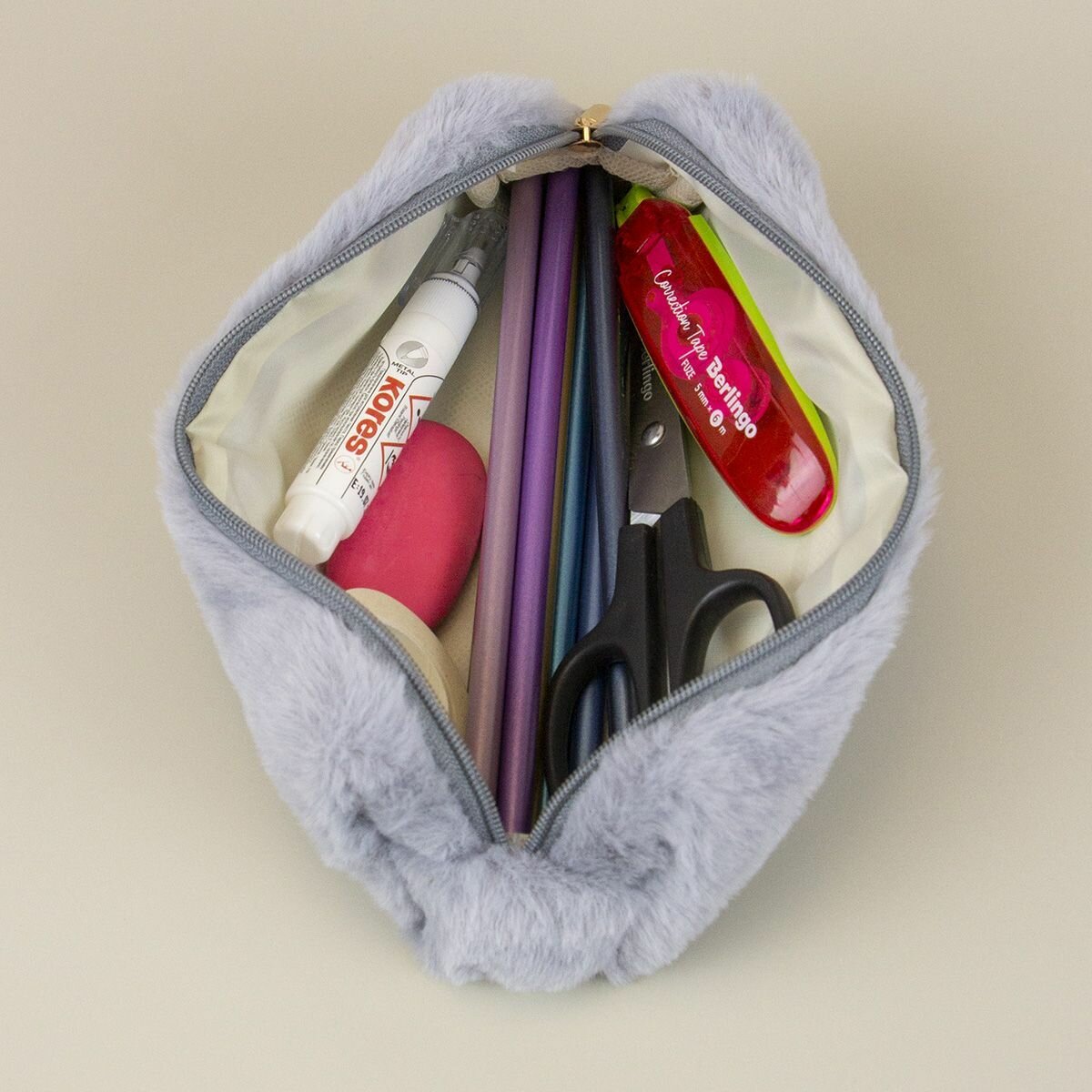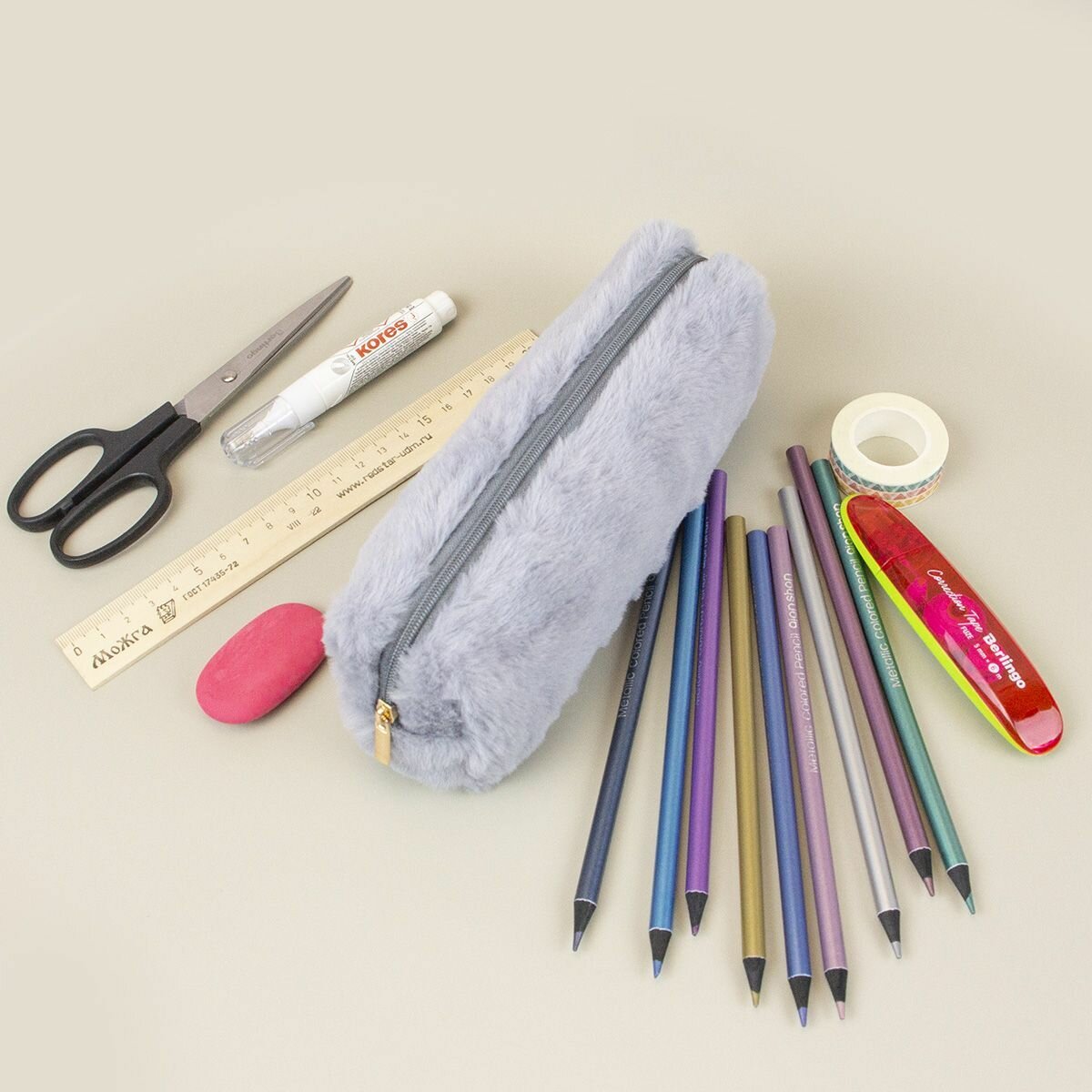 Купить Пенал плюшевый мех, пенал-косметичка однотонный - Серый