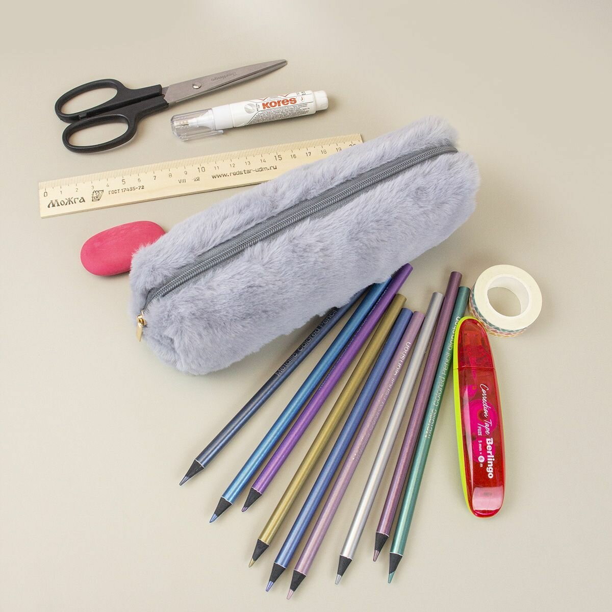 Пенал плюшевый мех, пенал-косметичка однотонный - Серый интересное: