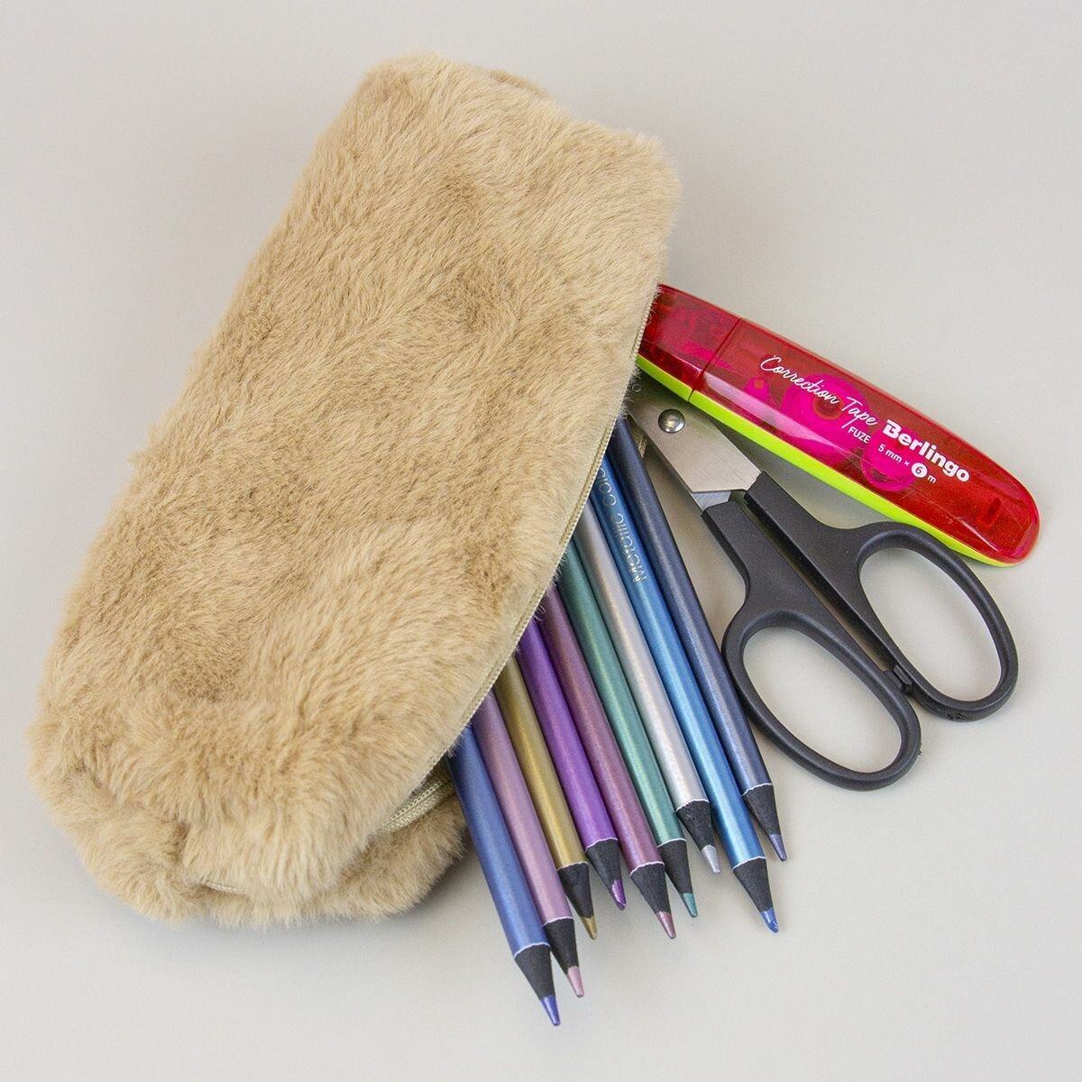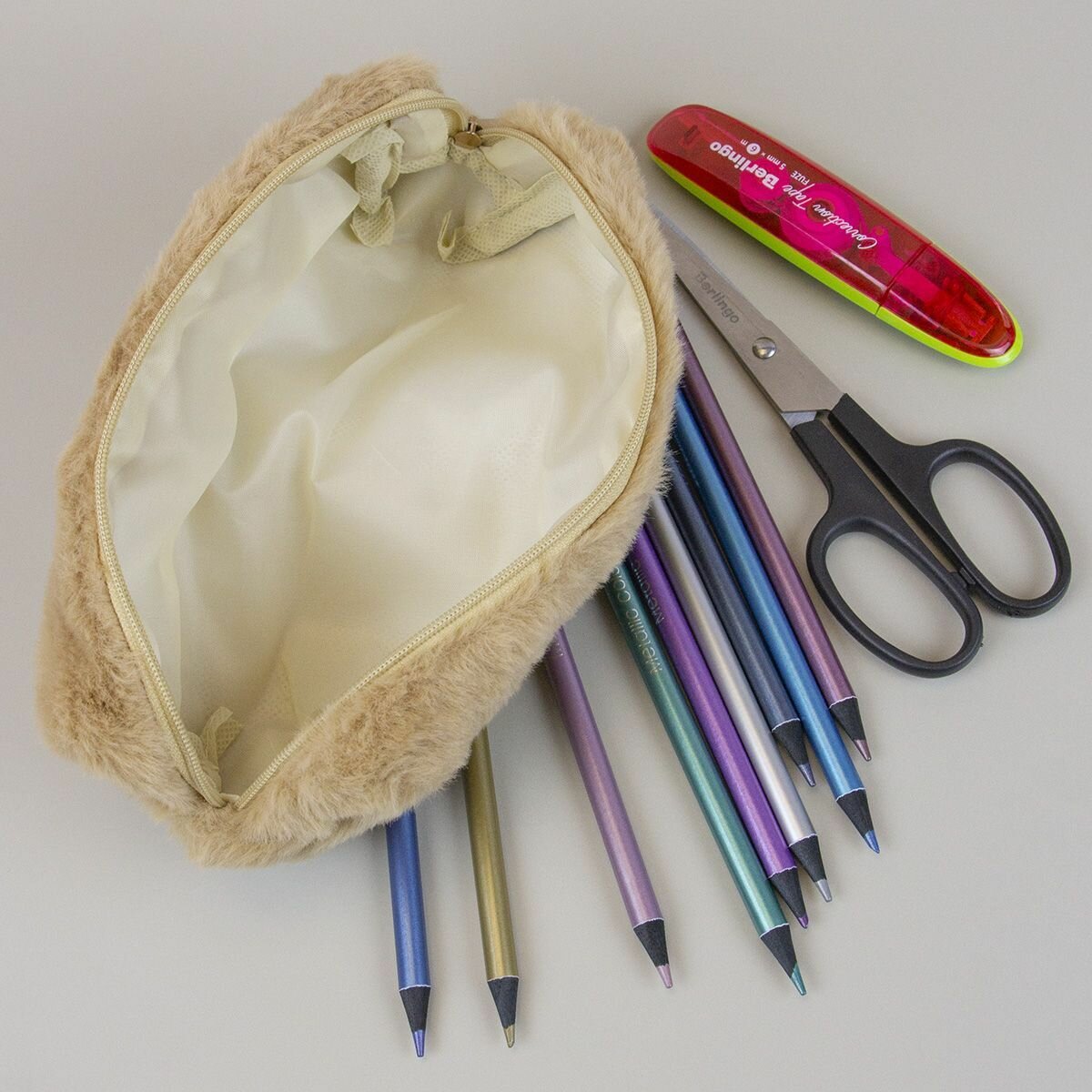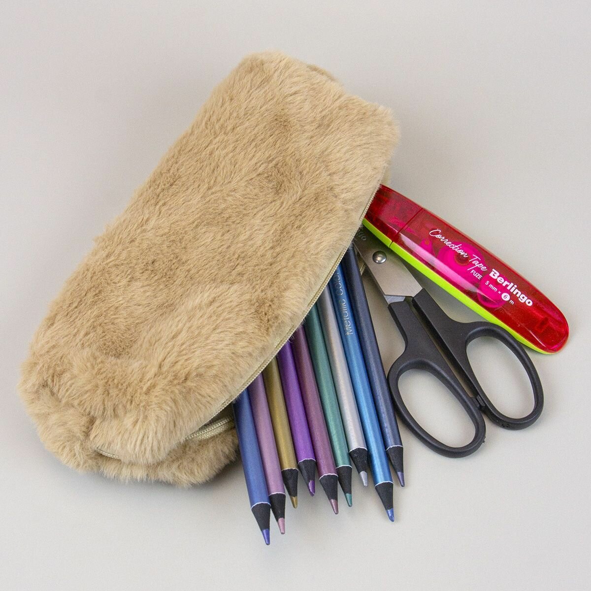 Пенал плюшевый мех, пенал-косметичка однотонный - Бежевый интересное: