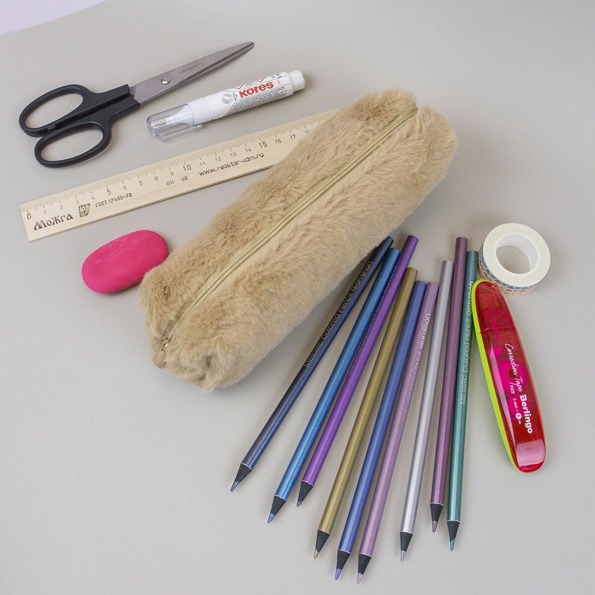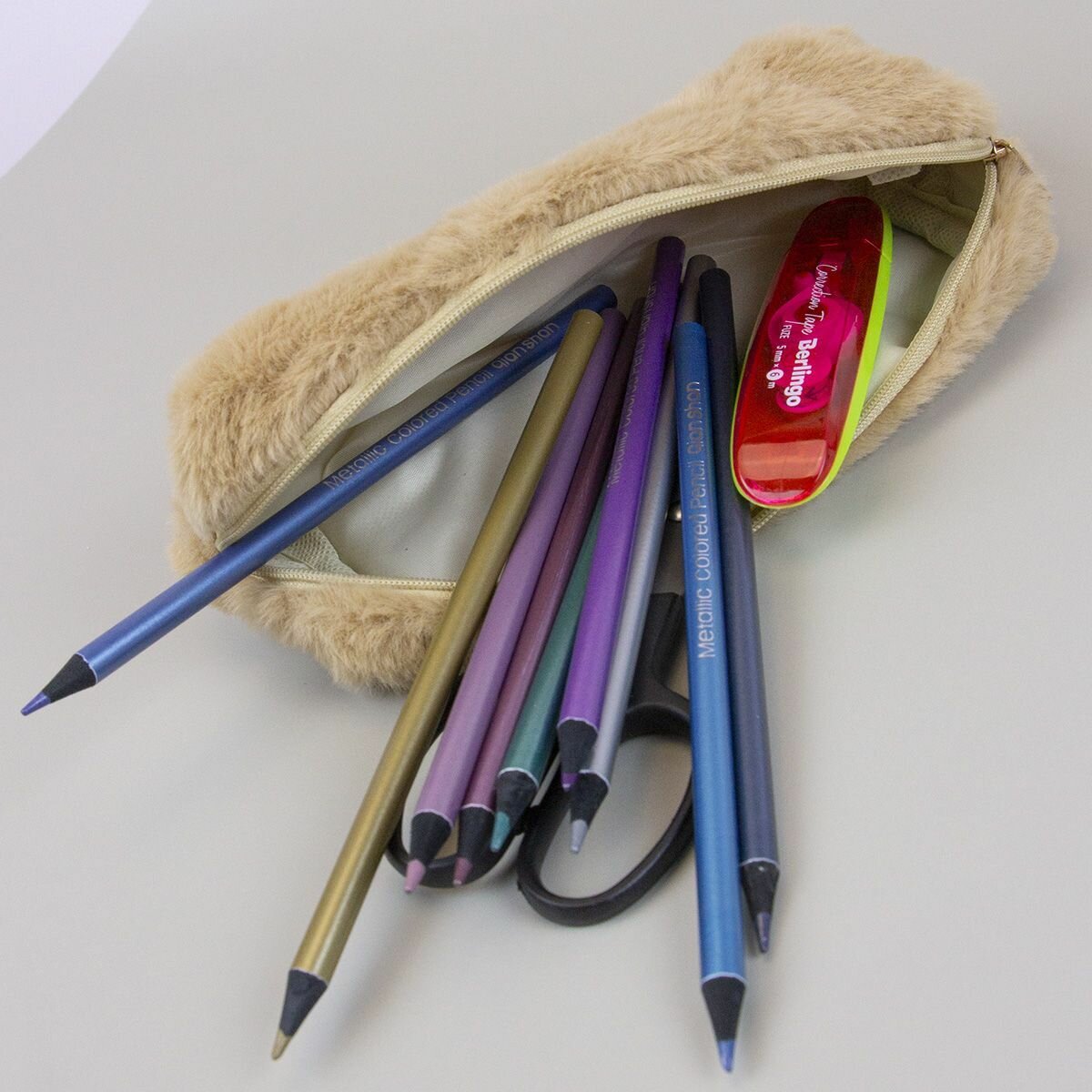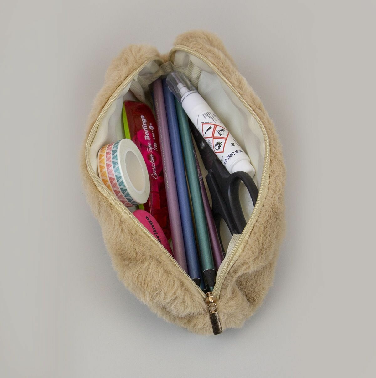 Пенал плюшевый мех, пенал-косметичка однотонный - Бежевый интересное: